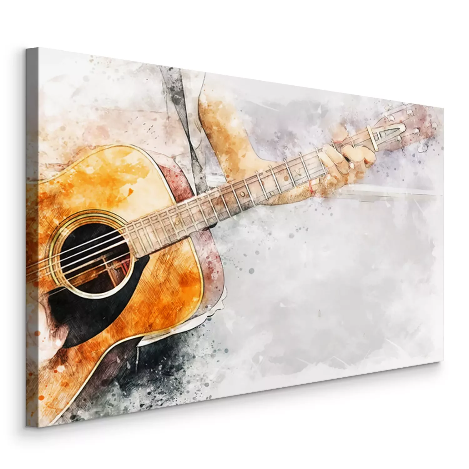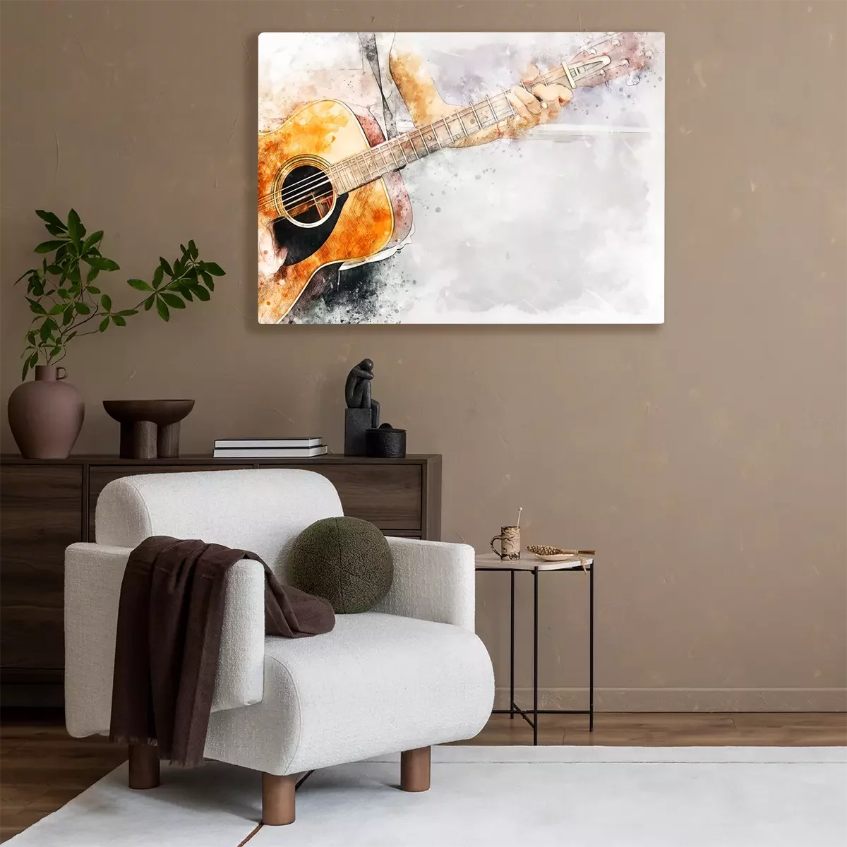 Canvas Abstract colorful shape on acoustic Guitar in the foreground on Watercolor painting background and Digital illustration brush to art.