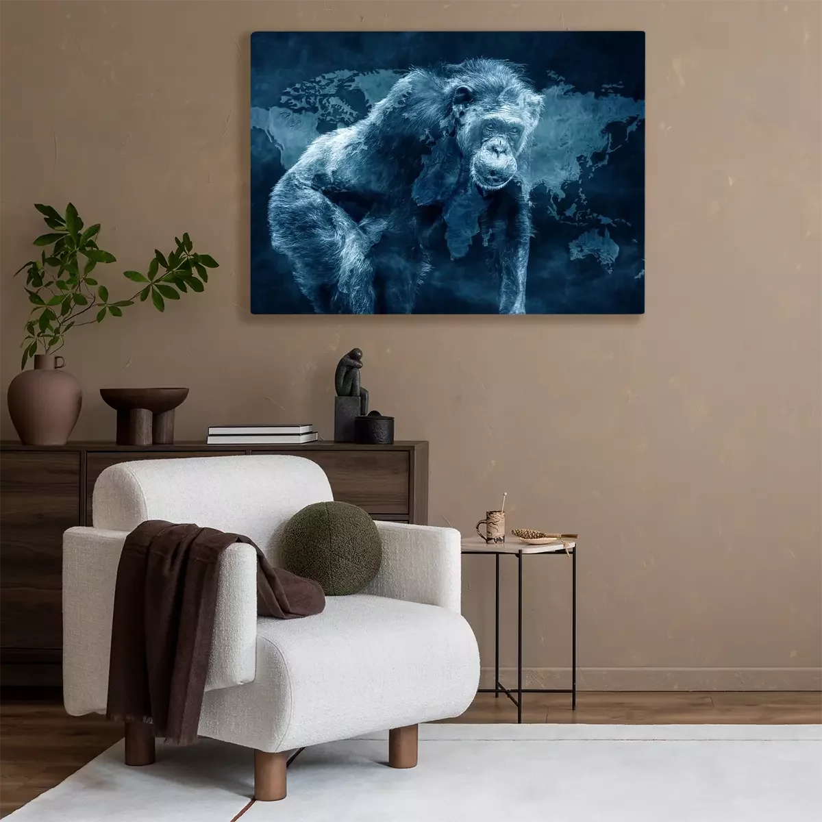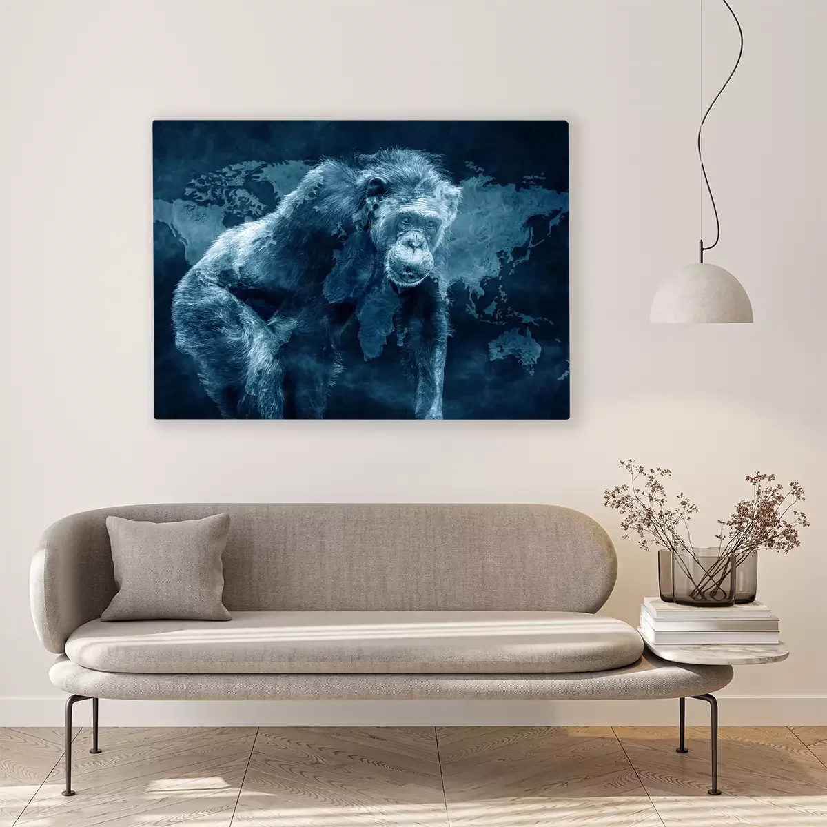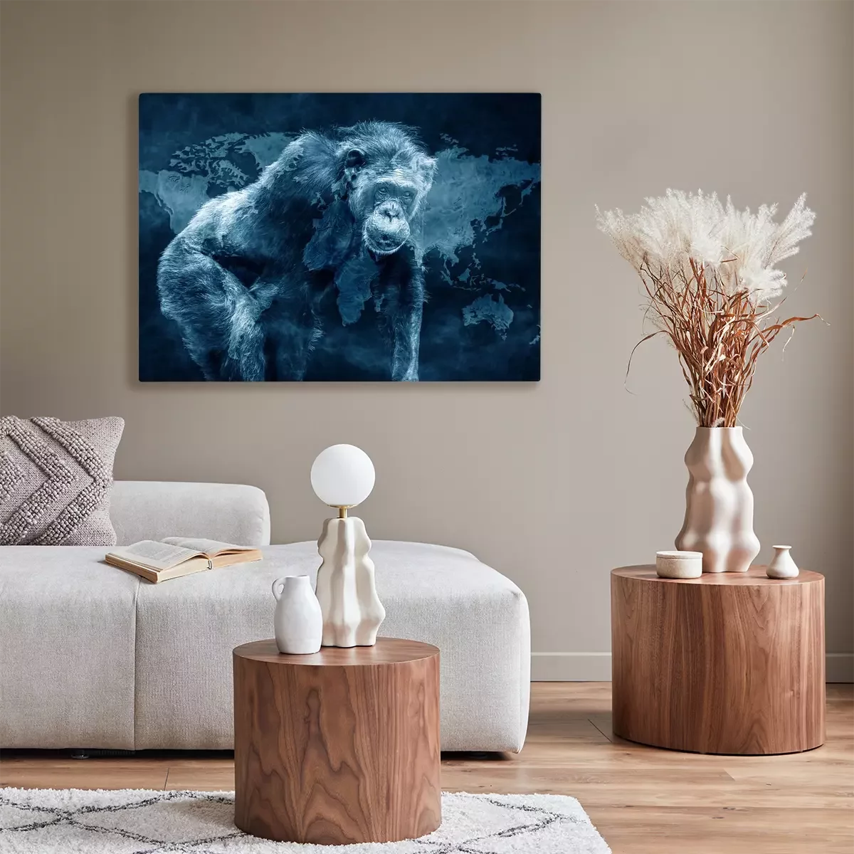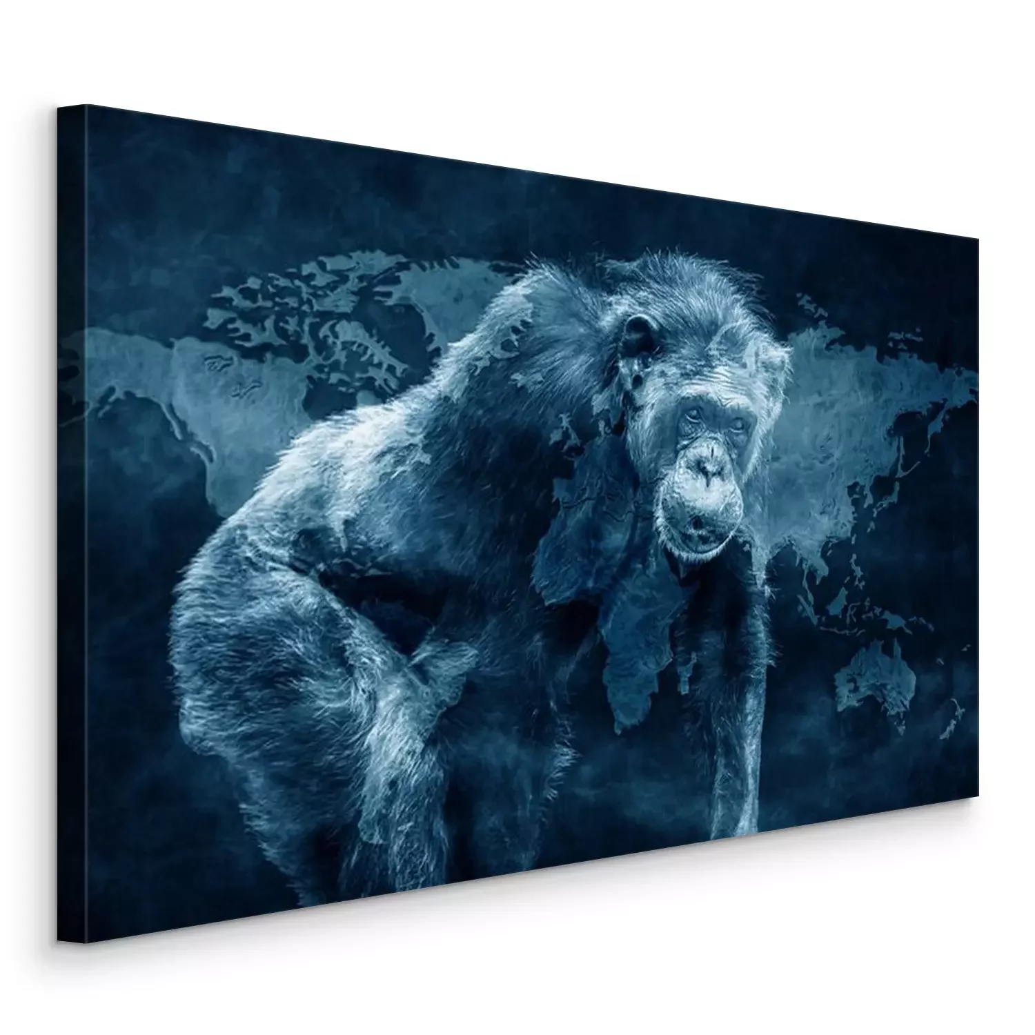 Canvas: Abstract concept van apen met wereldkaart op de achtergrond