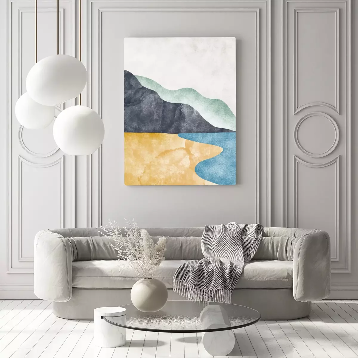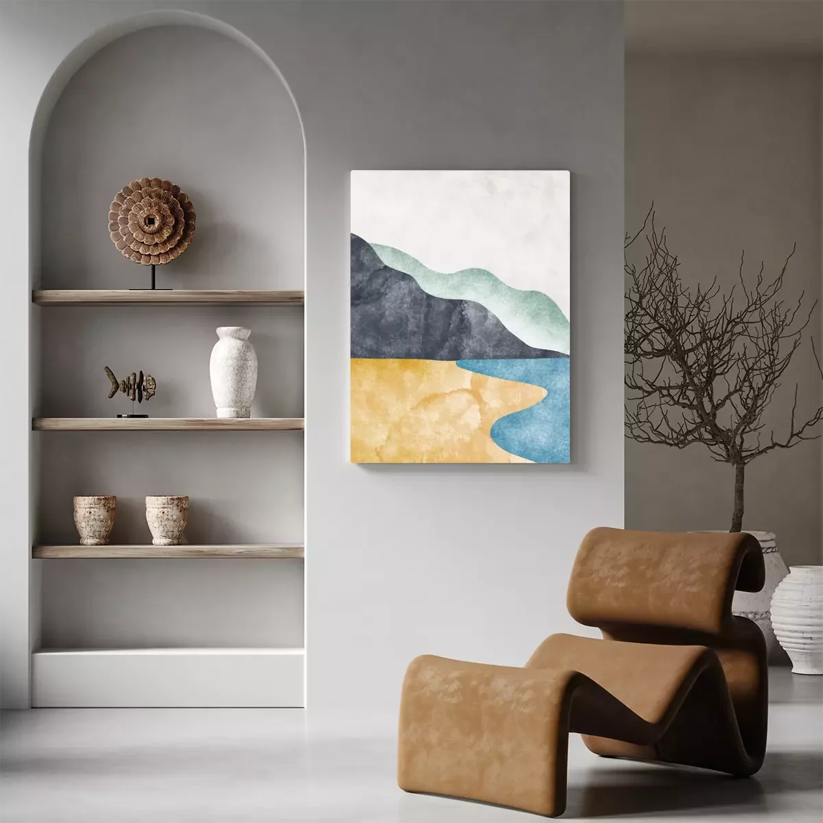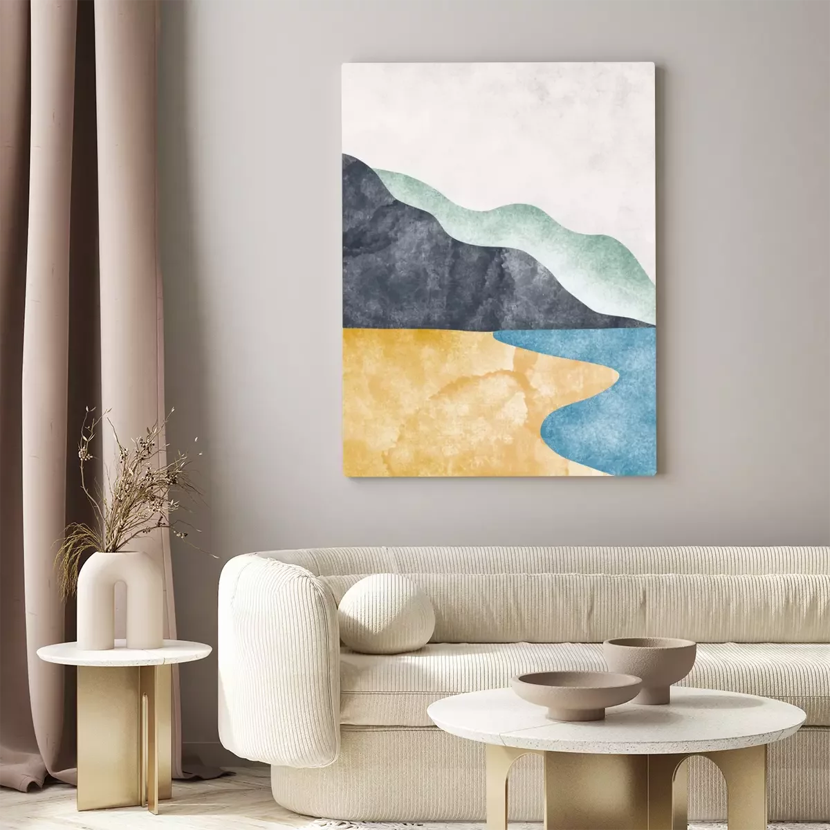 Canvas: Abstract contemporary aesthetic background with mountain landscape. Boho wall decor. Minimalist design. vector background illustration.