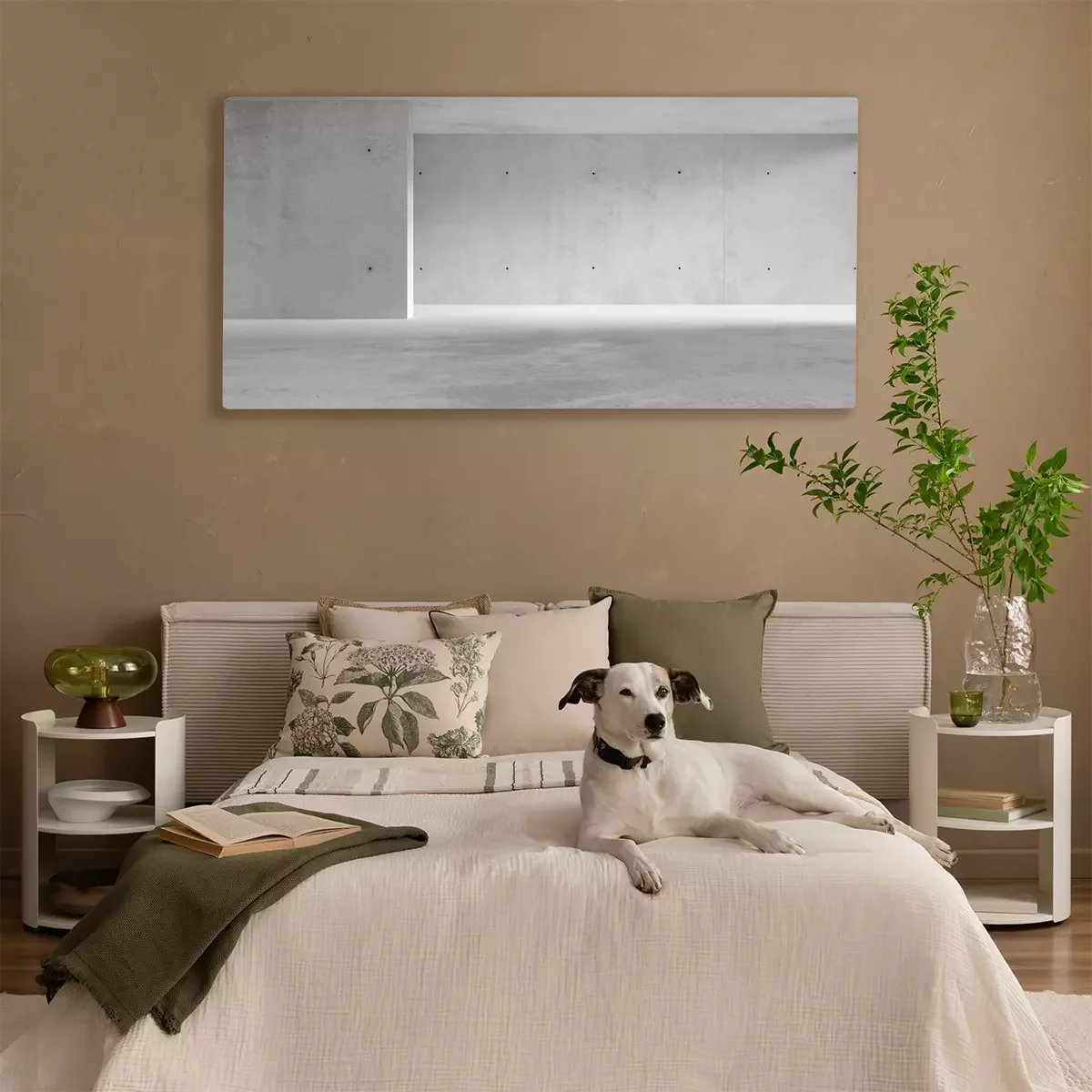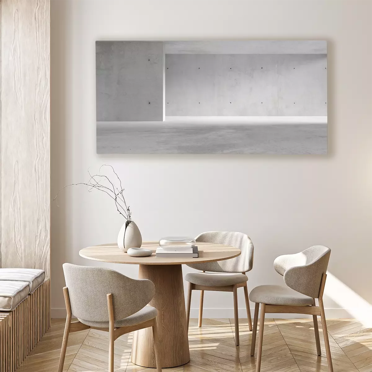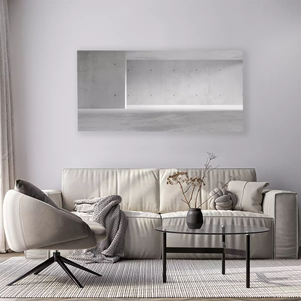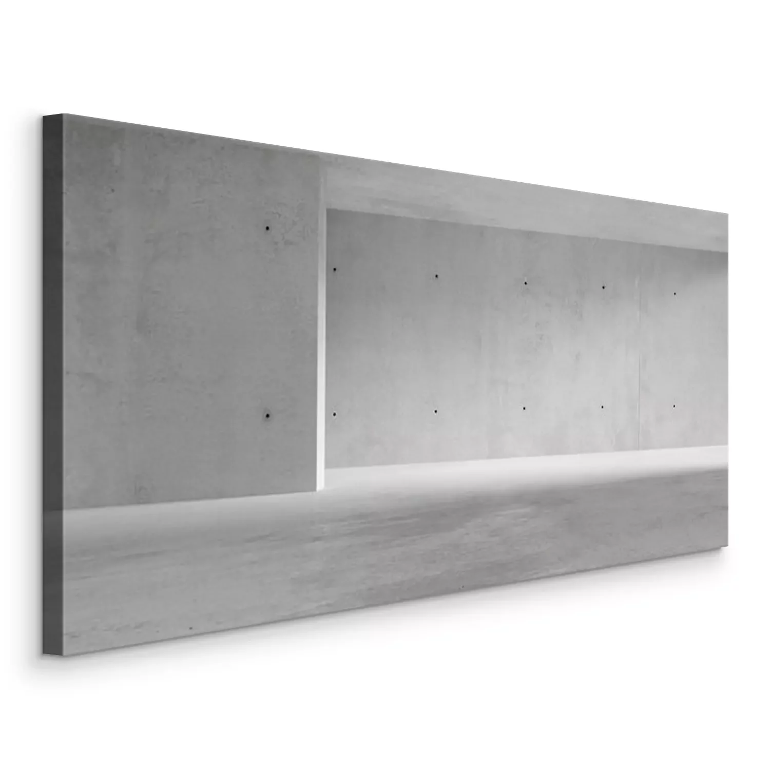 Canvas: Abstract empty, modern concrete room with indirect lighting from side wall - industrial interior background template, 3D illustration