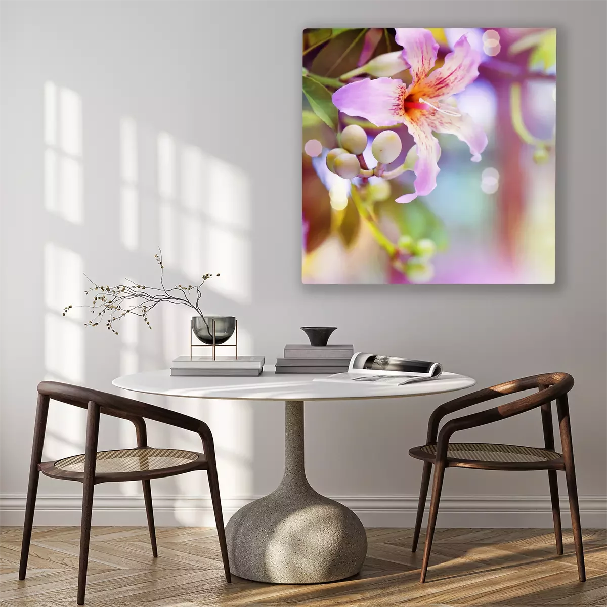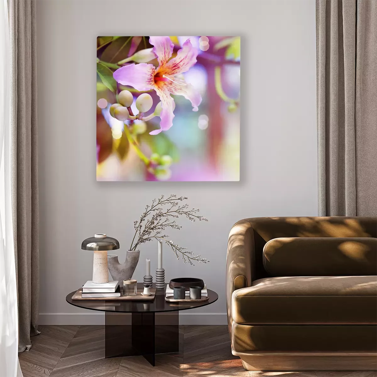 De print wordt aangebracht op hoogwaardig canvas dat op een schildersweefgetouw (spieraam) wordt gespannen. Omdat de print de zijranden bedekt, hoeft het ontwerp niet met een extra kader te worden omlijst. Wij raden ook composities aan die uit meerdere foto's bestaan en zo een coherente compositie vormen.