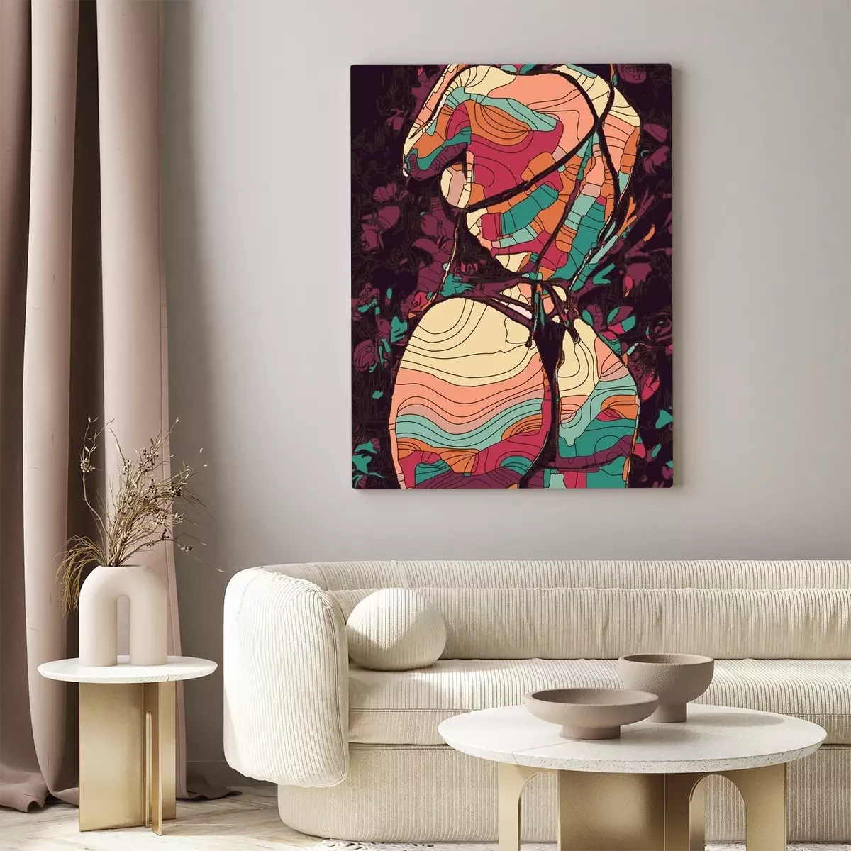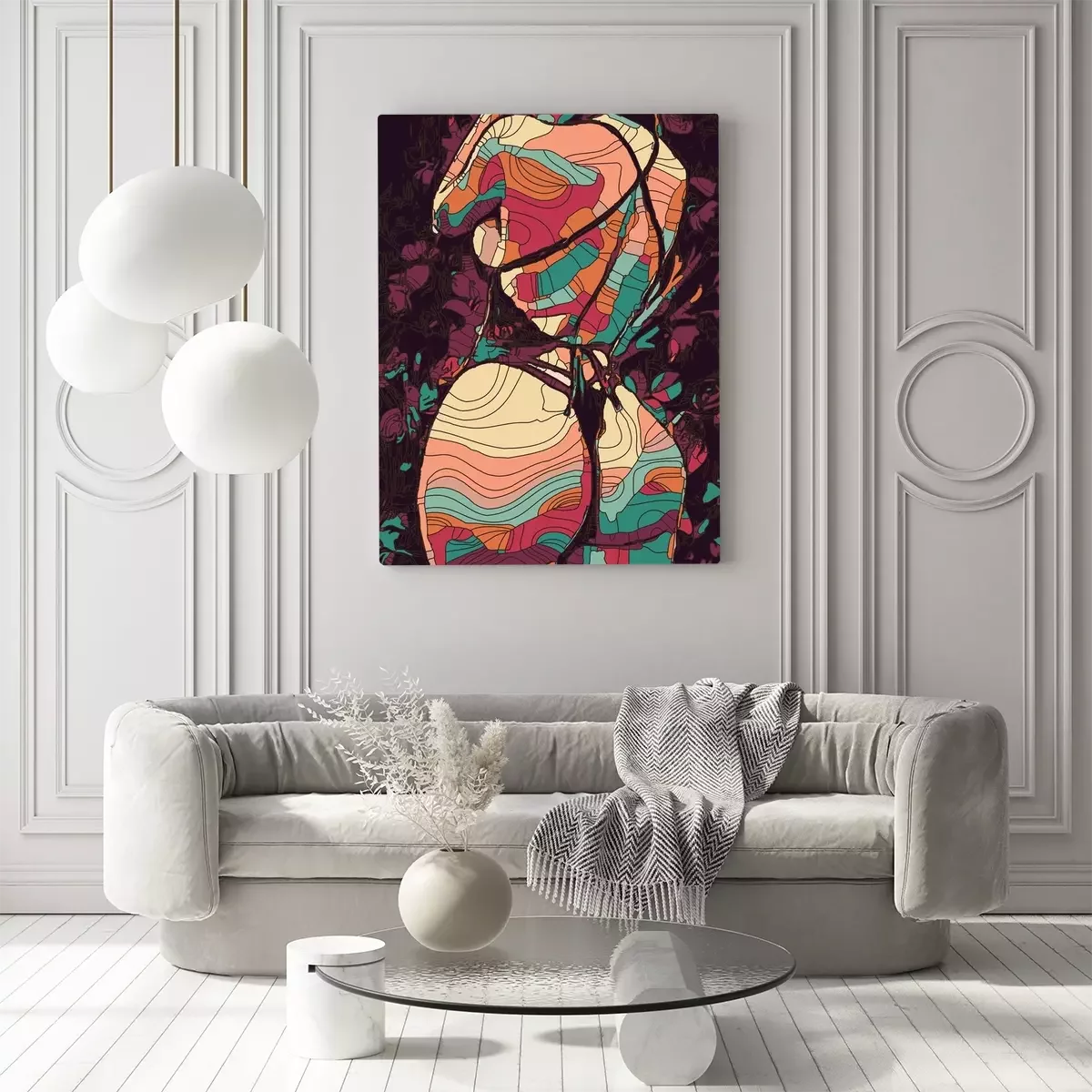 Canvas: Abstract geometrisch vrouwelijk silhouet