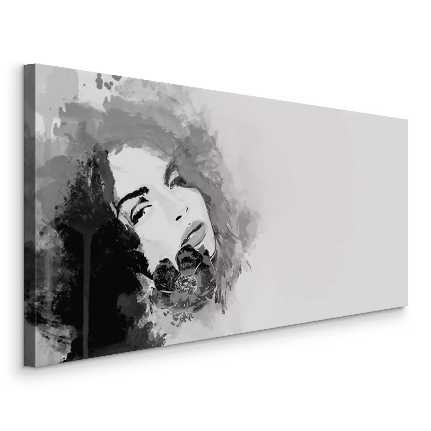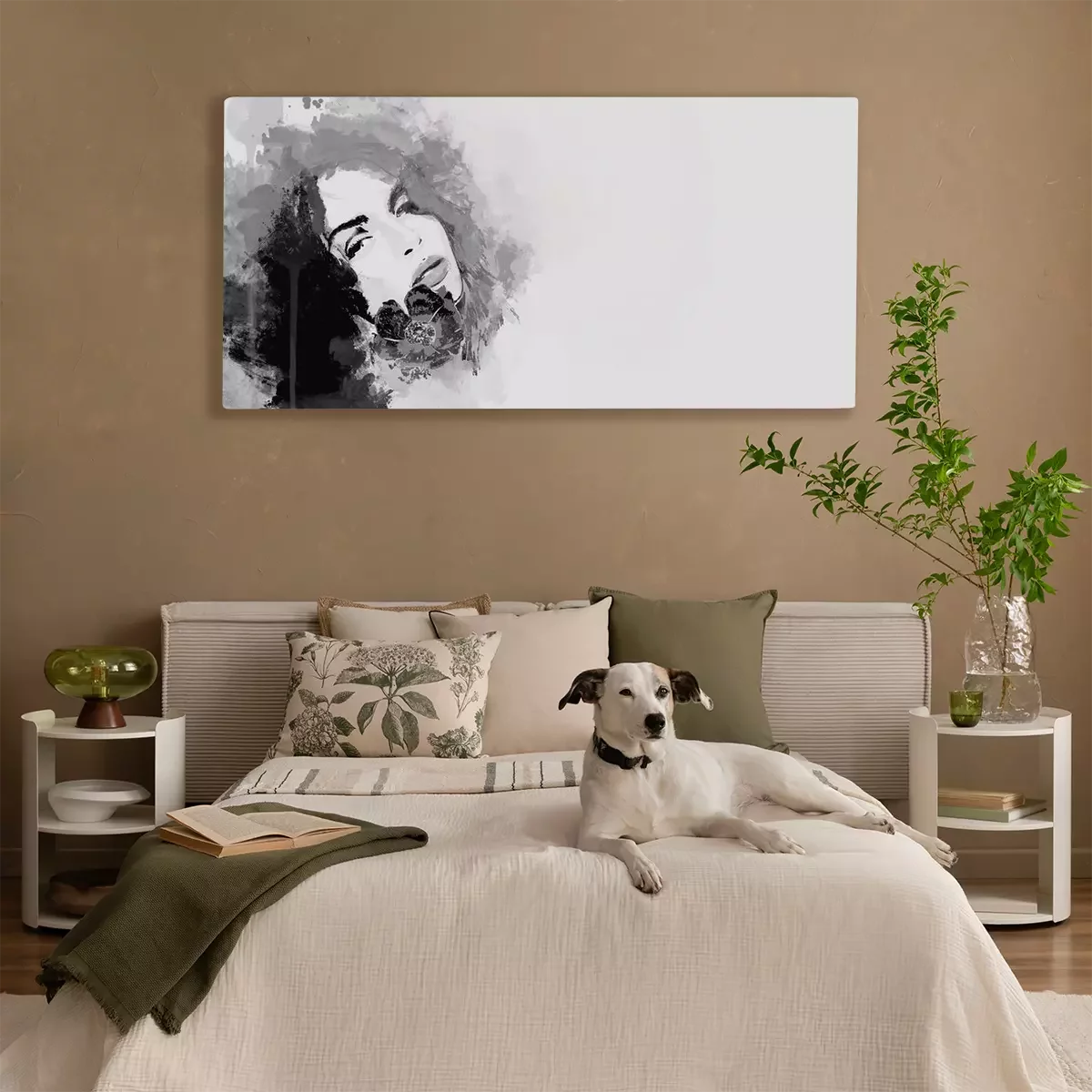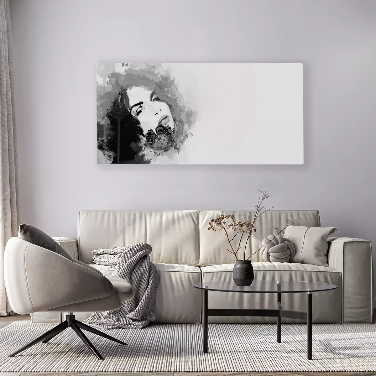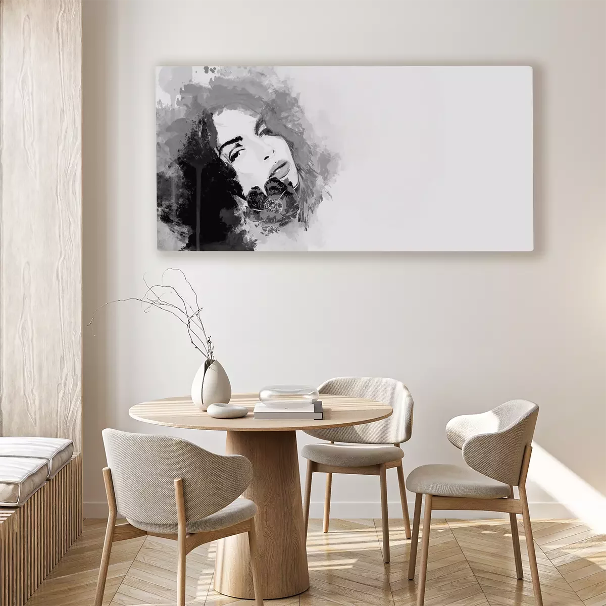 Canvas: abstract grunge background. Woman portrait painting watercolor. Fashion banner