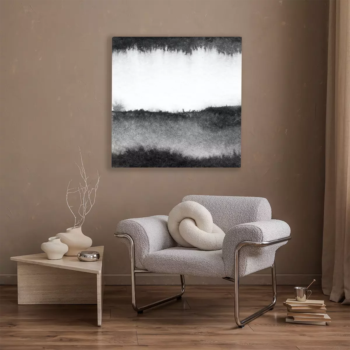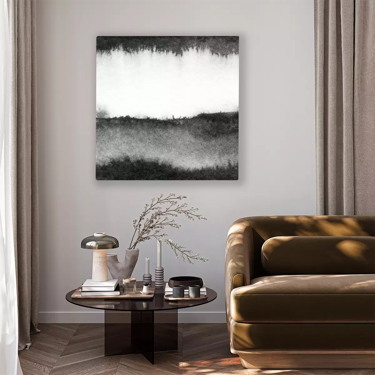 Canvas Abstract landscape ink hand drawn illustration. Black and white ink winter landscape with river. Minimalistic hand drawn illustration card background poster banner. Hand drawn watercolor black lines.