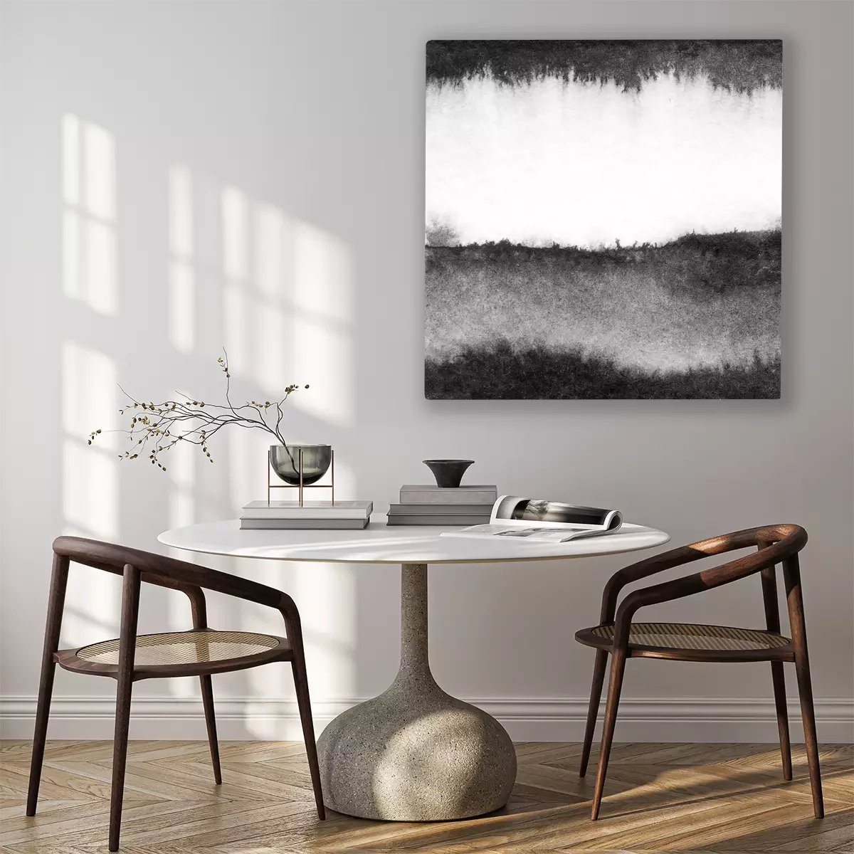 Canvas: Abstract landscape ink hand drawn illustration. Black and white ink winter landscape with river. Minimalistic hand drawn illustration card background poster banner. Hand drawn watercolor black lines.