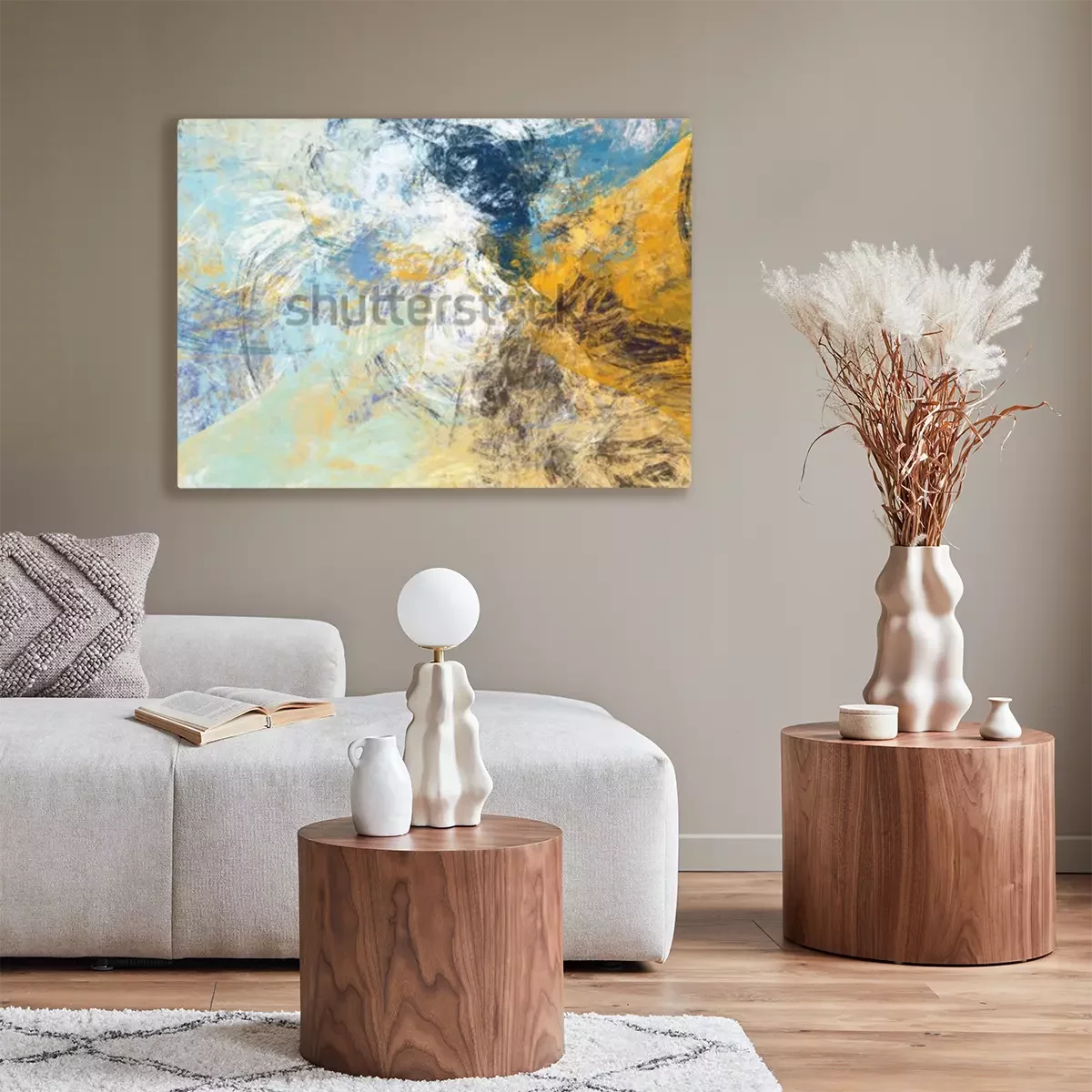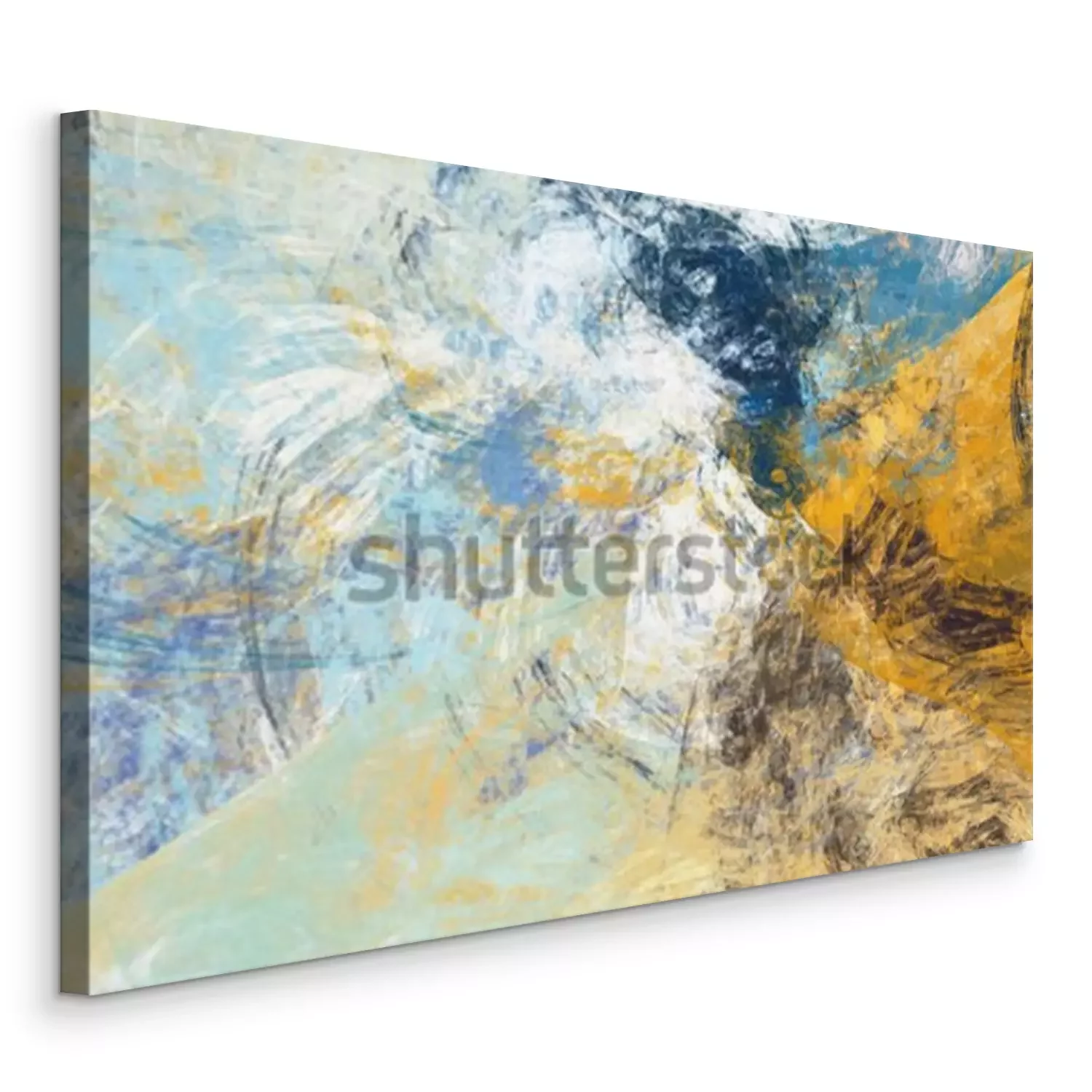 Canvas: Abstract mooie blauwe en gele zäch kleurenachtergrond. Dynamische verhaaltekst. Modern futuristisch patroon. Fractal artwork voor creatief grafisch ontwerp