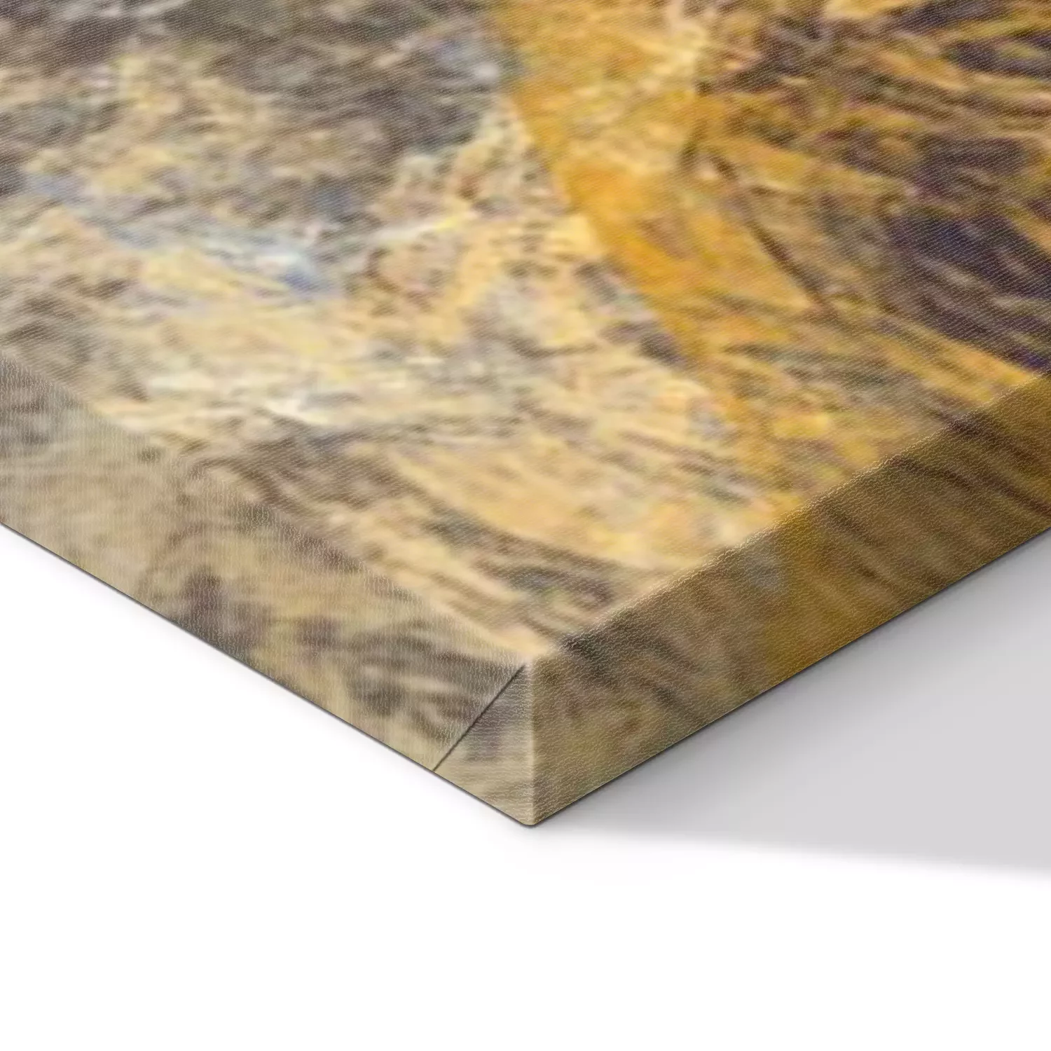 De print wordt aangebracht op hoogwaardig canvas dat op een schildersweefgetouw (spieraam) wordt gespannen. Omdat de print de zijranden bedekt, hoeft het ontwerp niet met een extra kader te worden omlijst. Wij raden ook composities aan die uit meerdere foto's bestaan en zo een coherente compositie vormen.