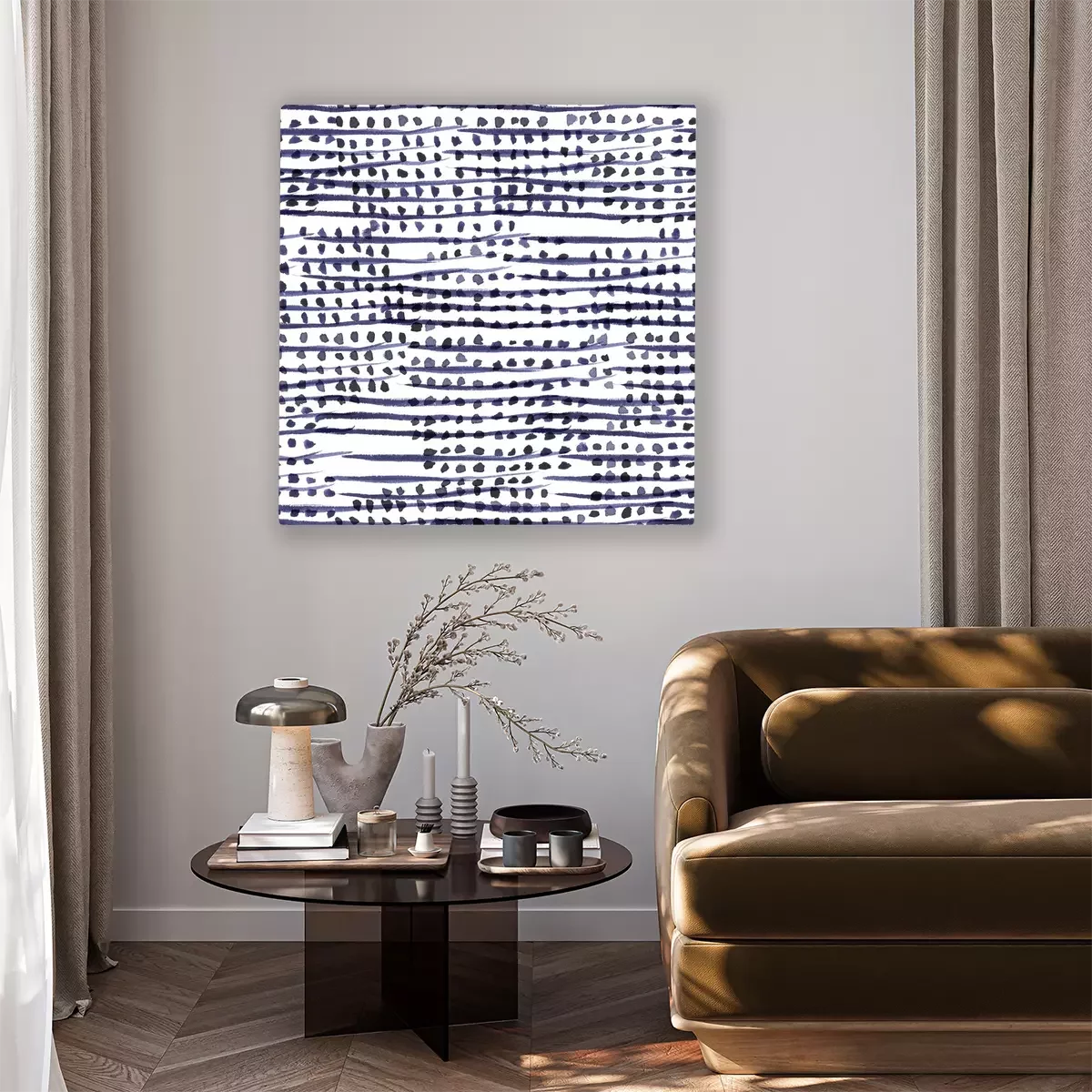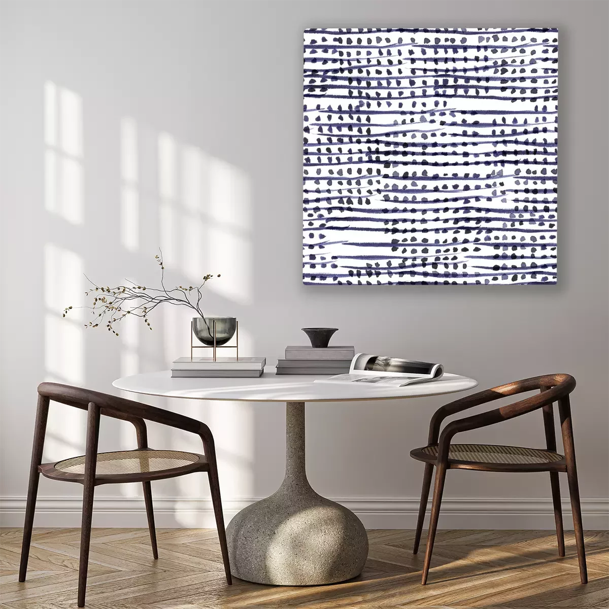 Canvas Abstract navy blue stripes and dots. Seamless watercolor pattern