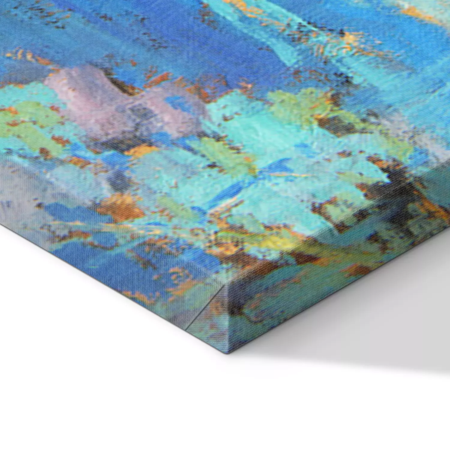 De print wordt aangebracht op hoogwaardig canvas dat op een schildersweefgetouw (spieraam) wordt gespannen. Omdat de print de zijranden bedekt, hoeft het ontwerp niet met een extra kader te worden omlijst. Wij raden ook composities aan die uit meerdere foto's bestaan en zo een coherente compositie vormen.