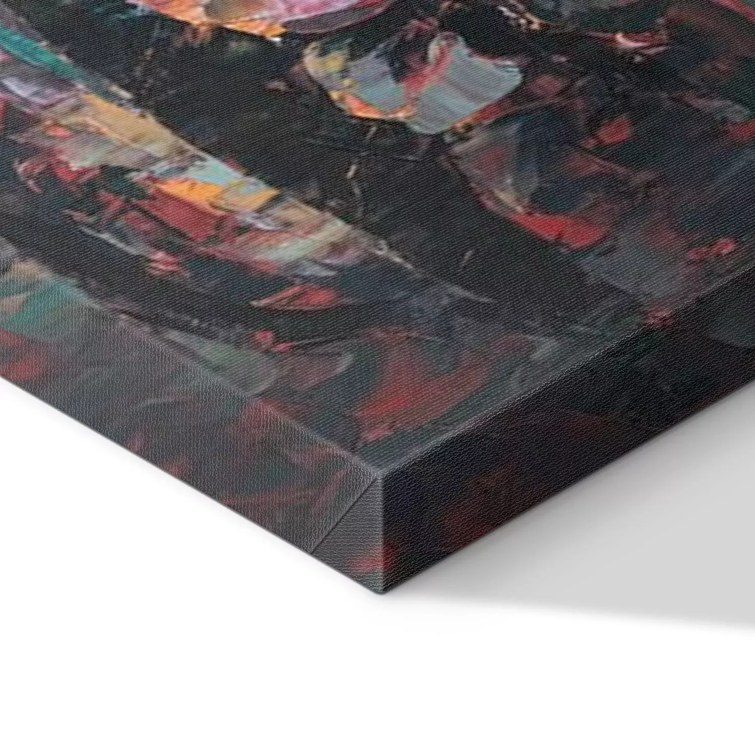 De print wordt aangebracht op hoogwaardig canvas dat op een schildersweefgetouw (spieraam) wordt gespannen. Omdat de print de zijranden bedekt, hoeft het ontwerp niet met een extra kader te worden omlijst. Wij raden ook composities aan die uit meerdere foto's bestaan en zo een coherente compositie vormen.