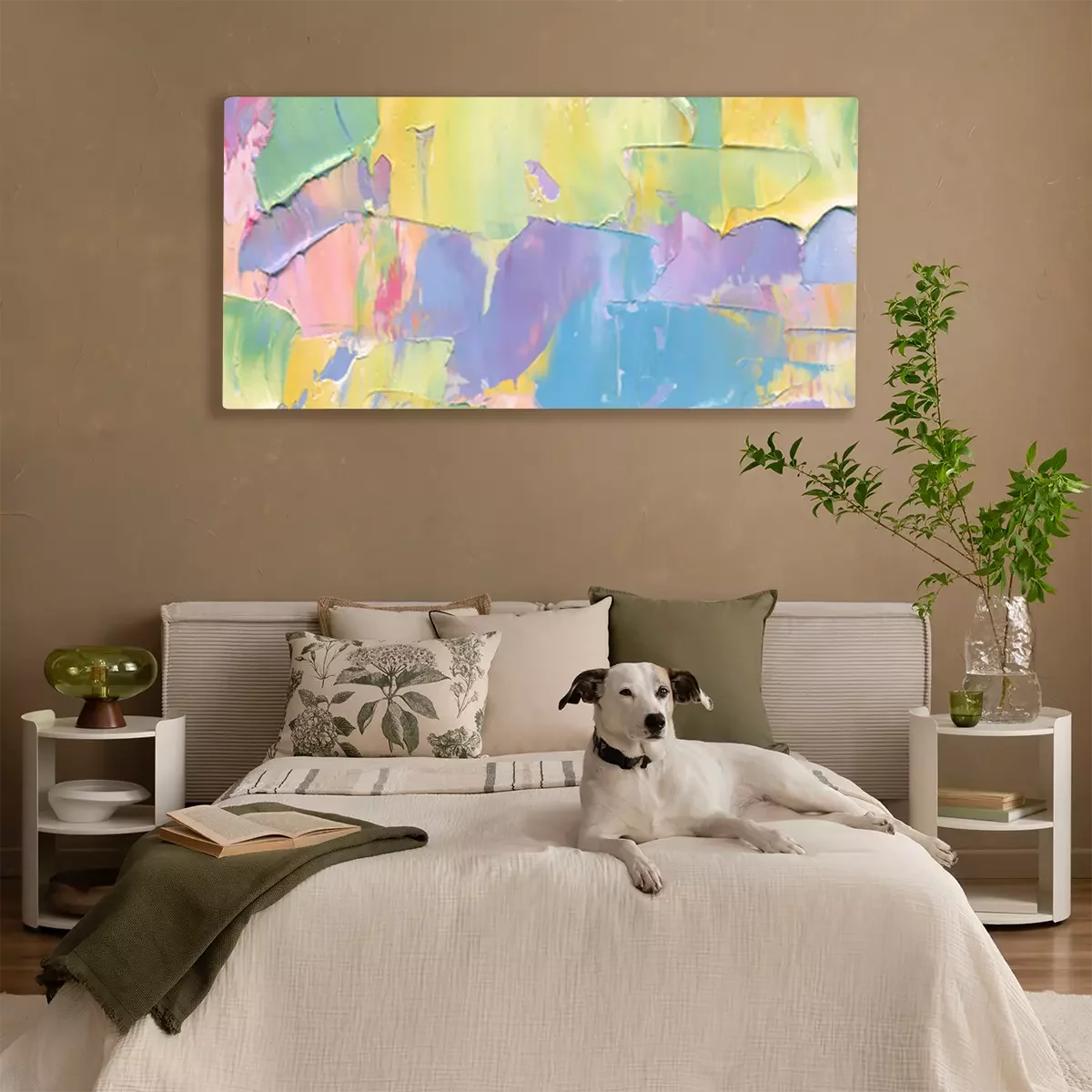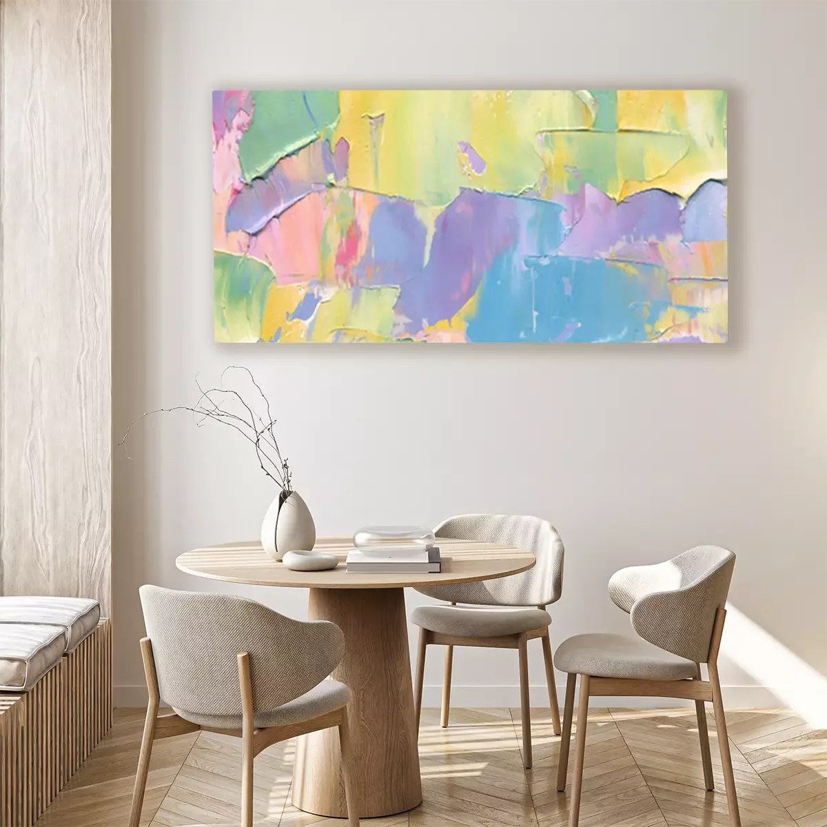 Canvas: Abstract painting background in pastel positive color as wallpaper, pattern, art print, textured fonts, shapes etc. Natural texture of oil paint. High quality details.