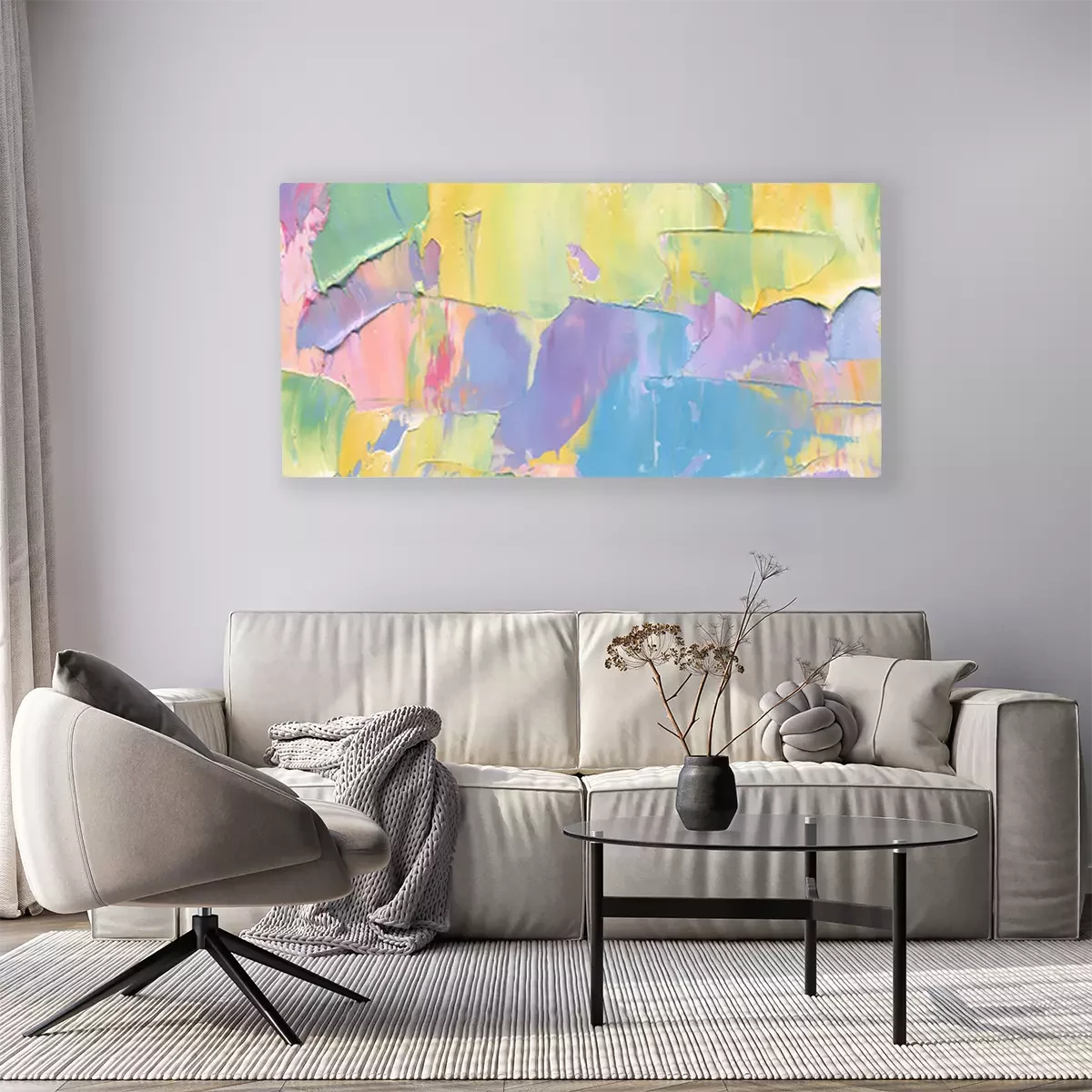 Canvas Abstract painting background in pastel positive color as wallpaper, pattern, art print, textured fonts, shapes etc. Natural texture of oil paint. High quality details.