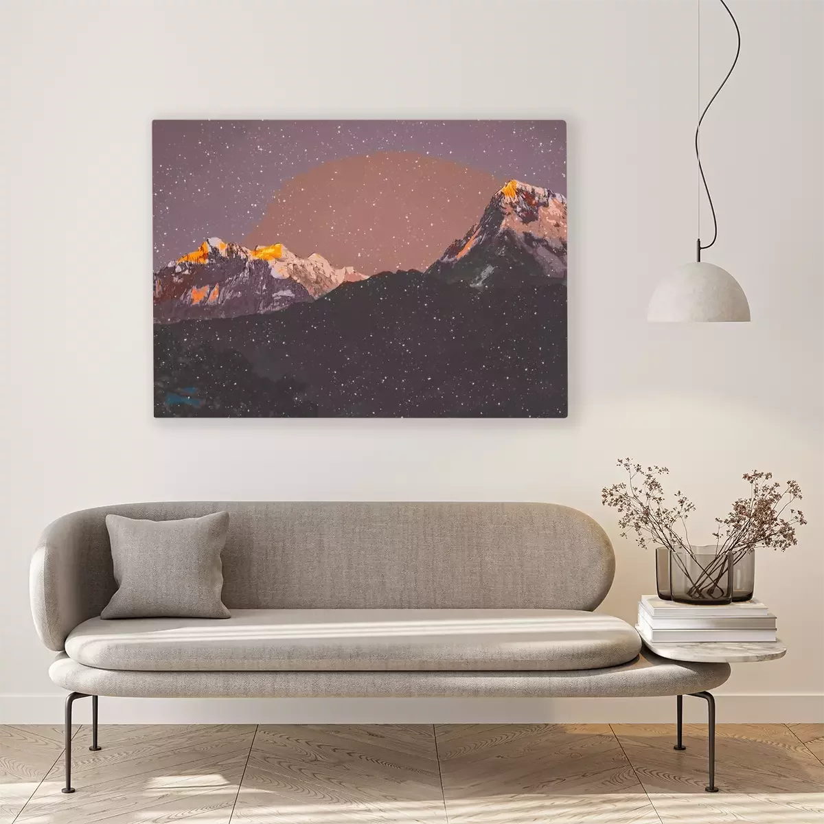 De print wordt aangebracht op hoogwaardig canvas dat op een schildersweefgetouw (spieraam) wordt gespannen. Omdat de print de zijranden bedekt, hoeft het ontwerp niet met een extra kader te worden omlijst. Wij raden ook composities aan die uit meerdere foto's bestaan en zo een coherente compositie vormen.