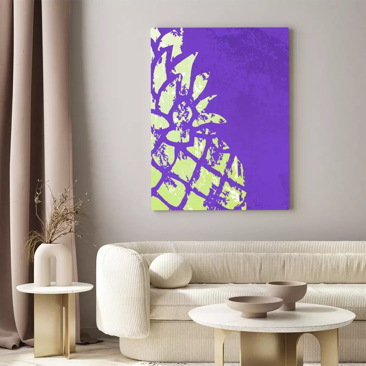 Abstract patroon met een ananasfragment in groen en paars