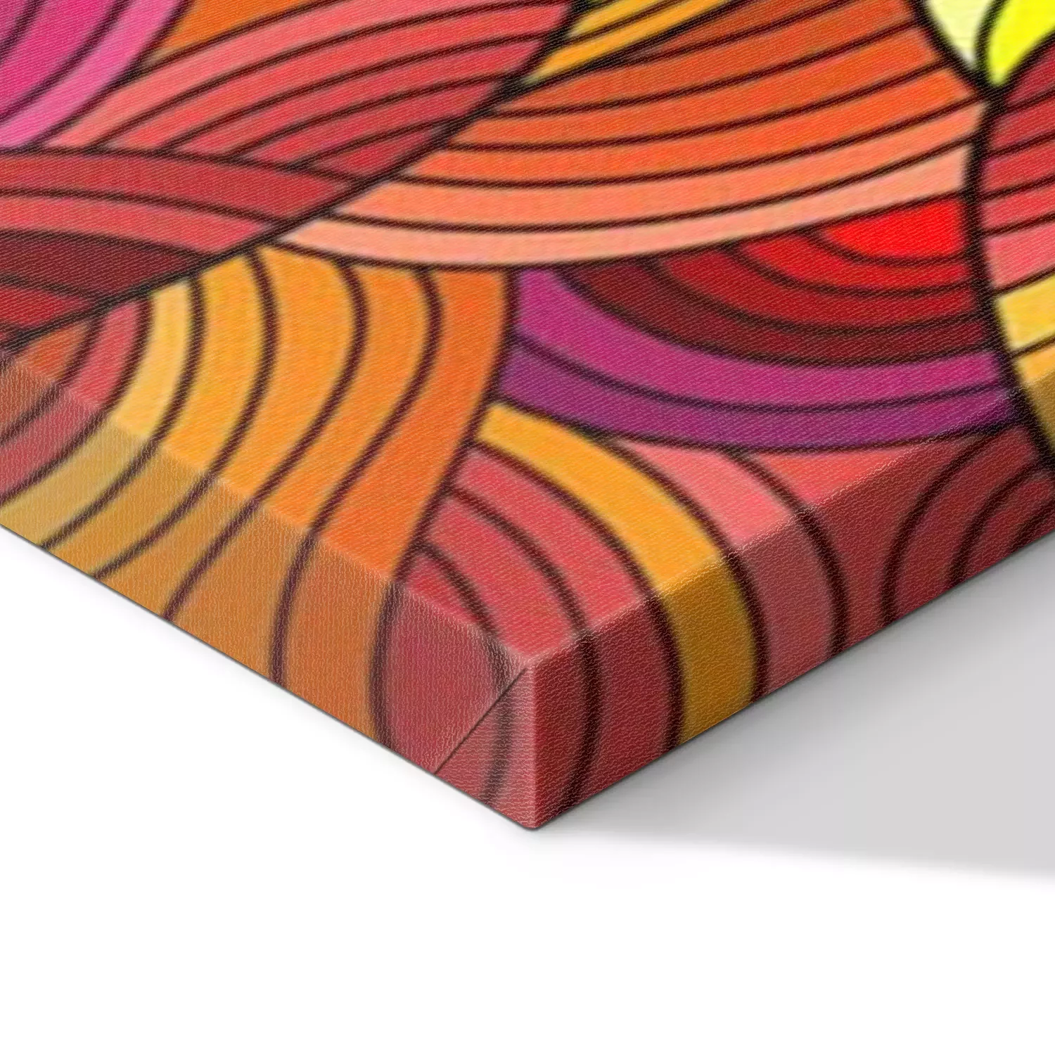 De print wordt aangebracht op hoogwaardig canvas dat op een schildersweefgetouw (spieraam) wordt gespannen. Omdat de print de zijranden bedekt, hoeft het ontwerp niet met een extra kader te worden omlijst. Wij raden ook composities aan die uit meerdere foto's bestaan en zo een coherente compositie vormen.