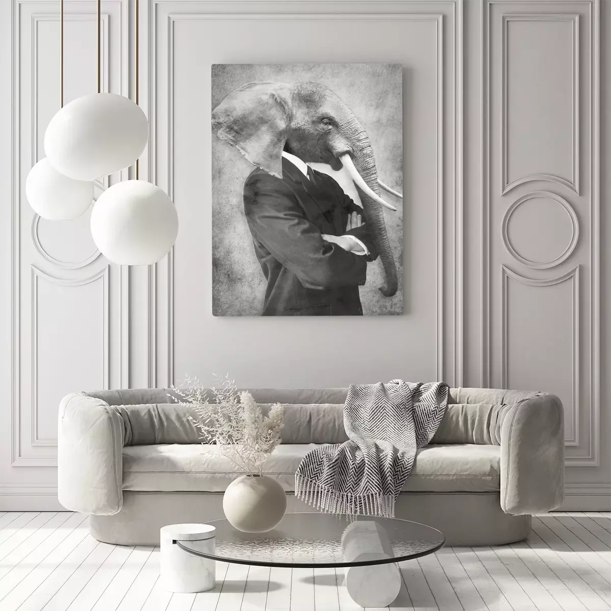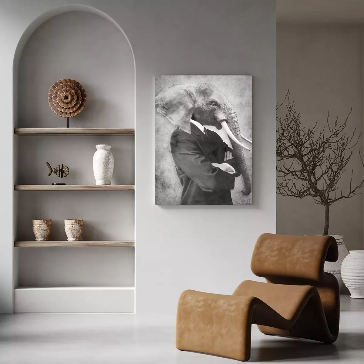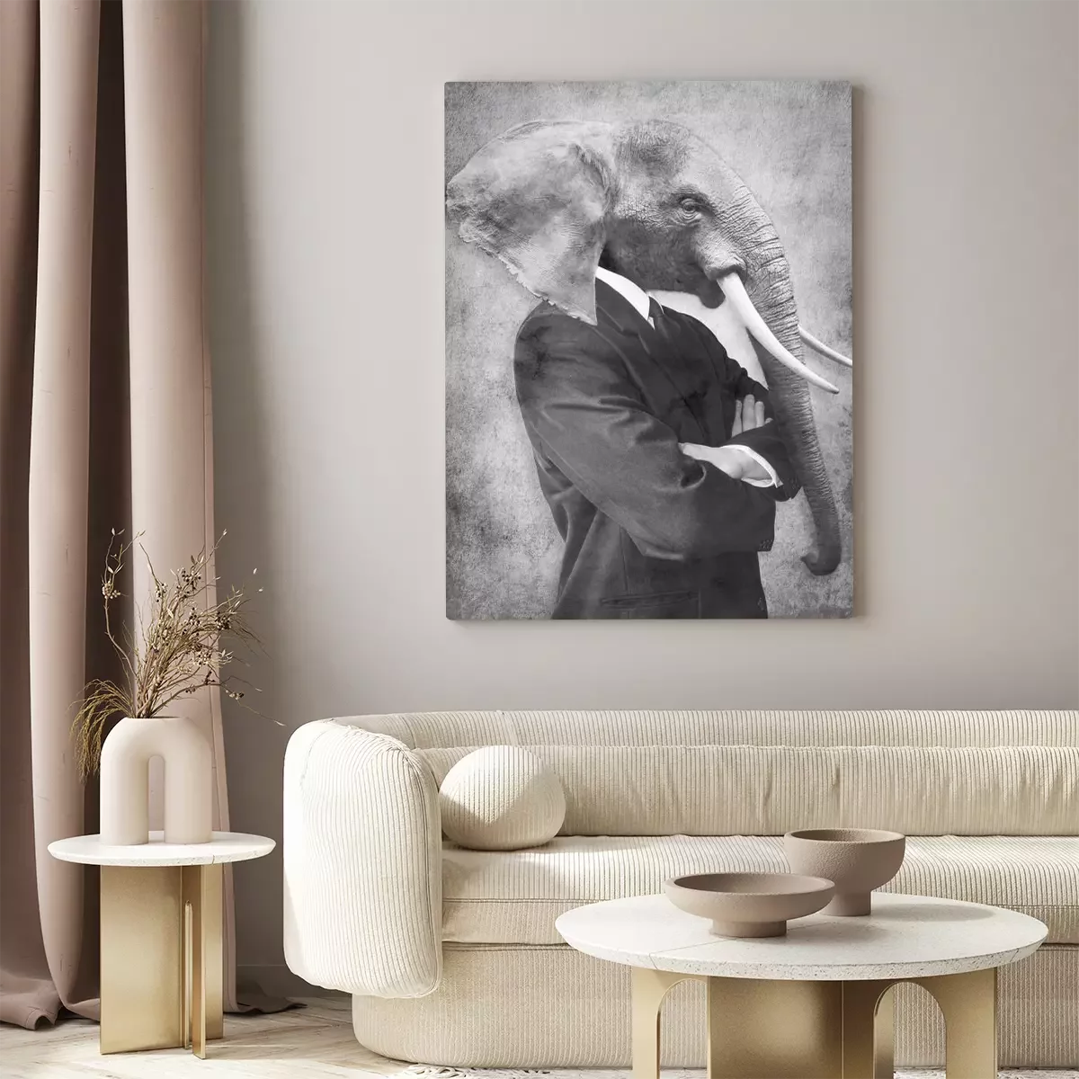 Abstract portret van een man met een olifantenkop