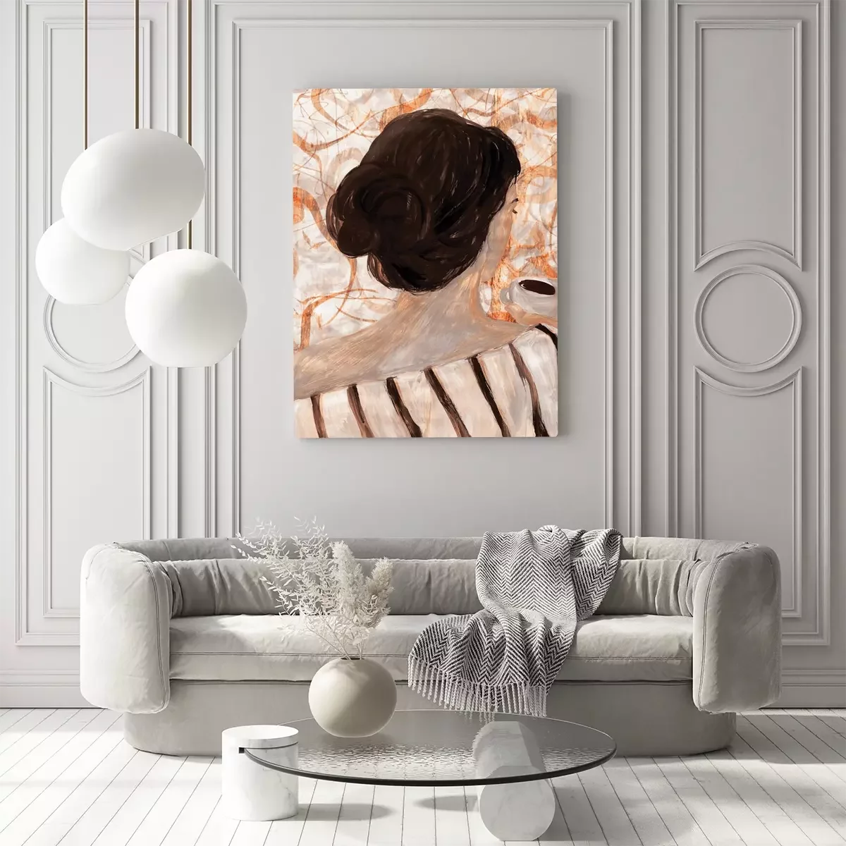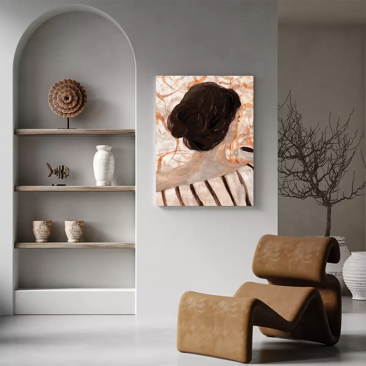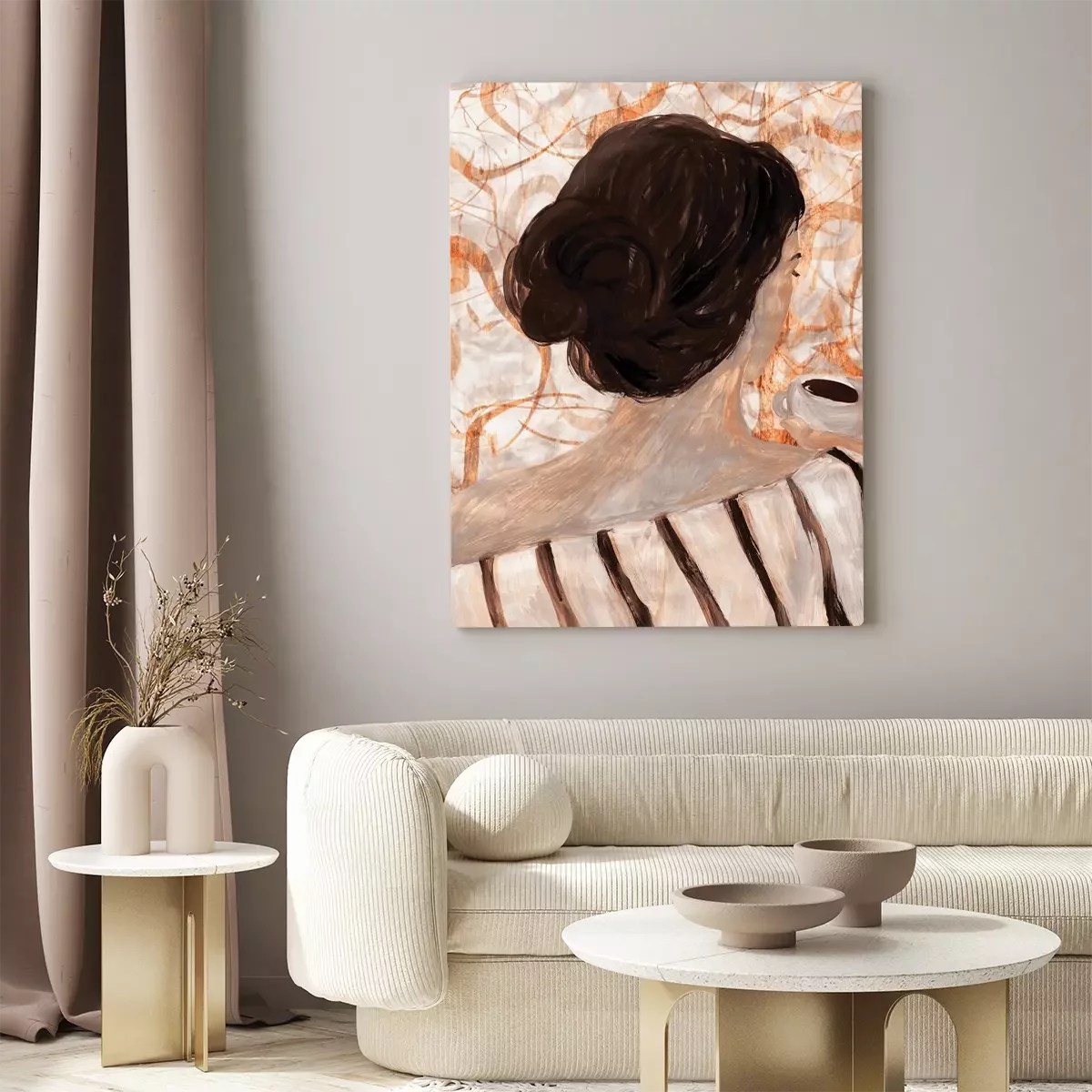 Abstract portret van een vrouw met een kopje koffie