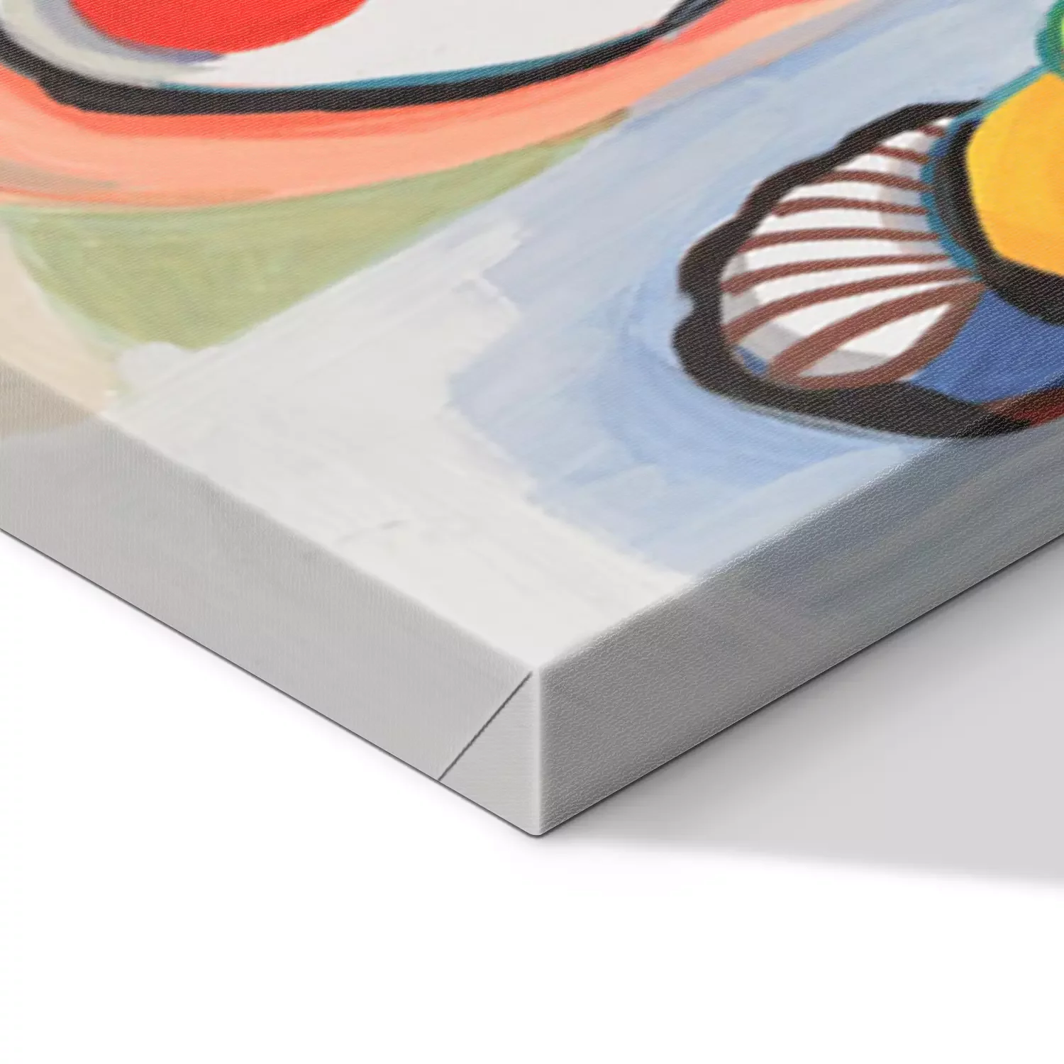 De print wordt aangebracht op hoogwaardig canvas dat op een schildersweefgetouw (spieraam) wordt gespannen. Omdat de print de zijranden bedekt, hoeft het ontwerp niet met een extra kader te worden omlijst. Wij raden ook composities aan die uit meerdere foto's bestaan en zo een coherente compositie vormen.