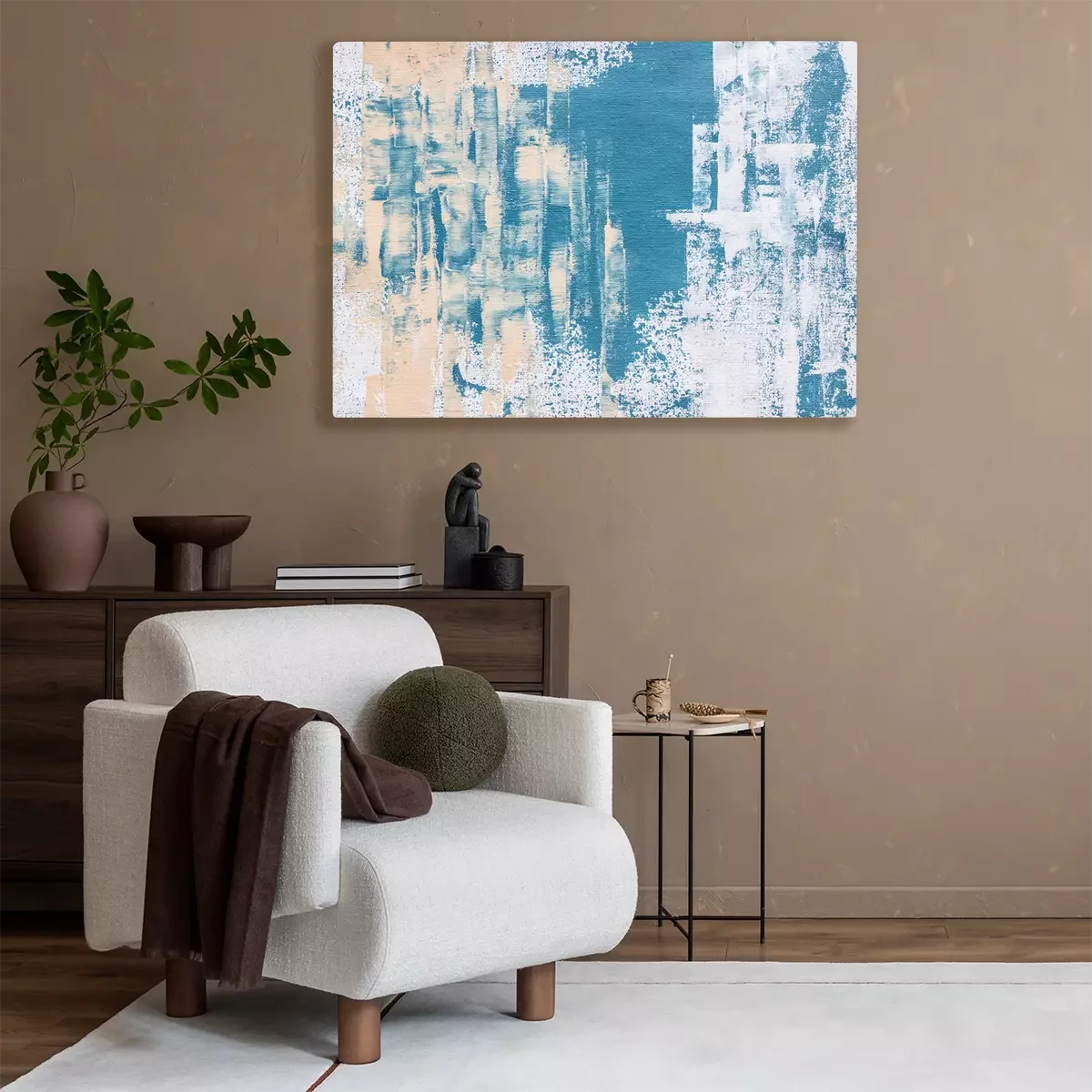 Canvas: abstract textured blue acrylic painting on canvas