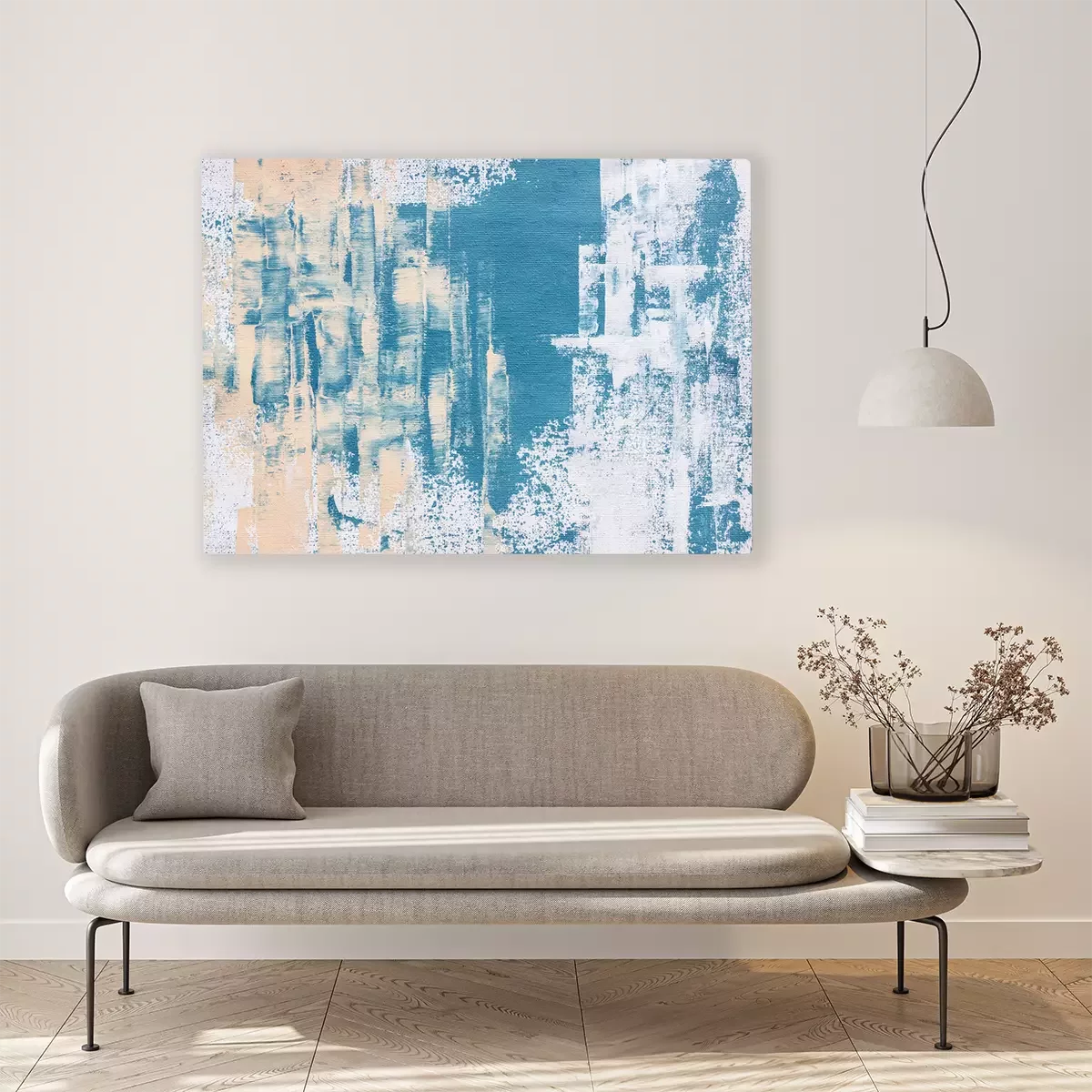 Canvas abstract textured blue acrylic painting on canvas