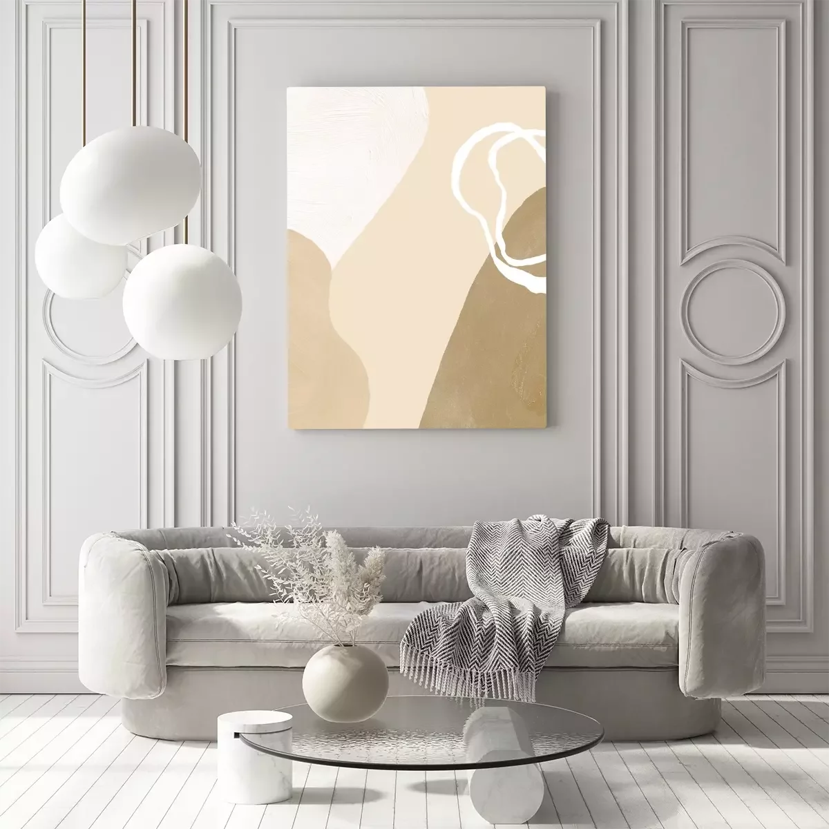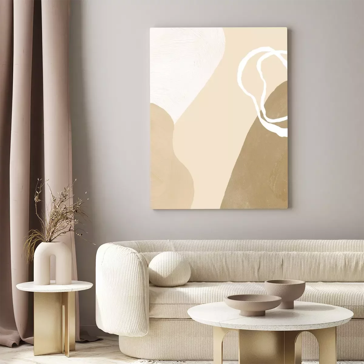 Canvas: Abstract trendy beige texture. Creative shapes. Minimalistic background for invitations.
