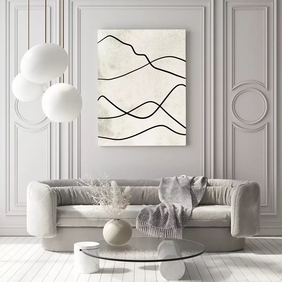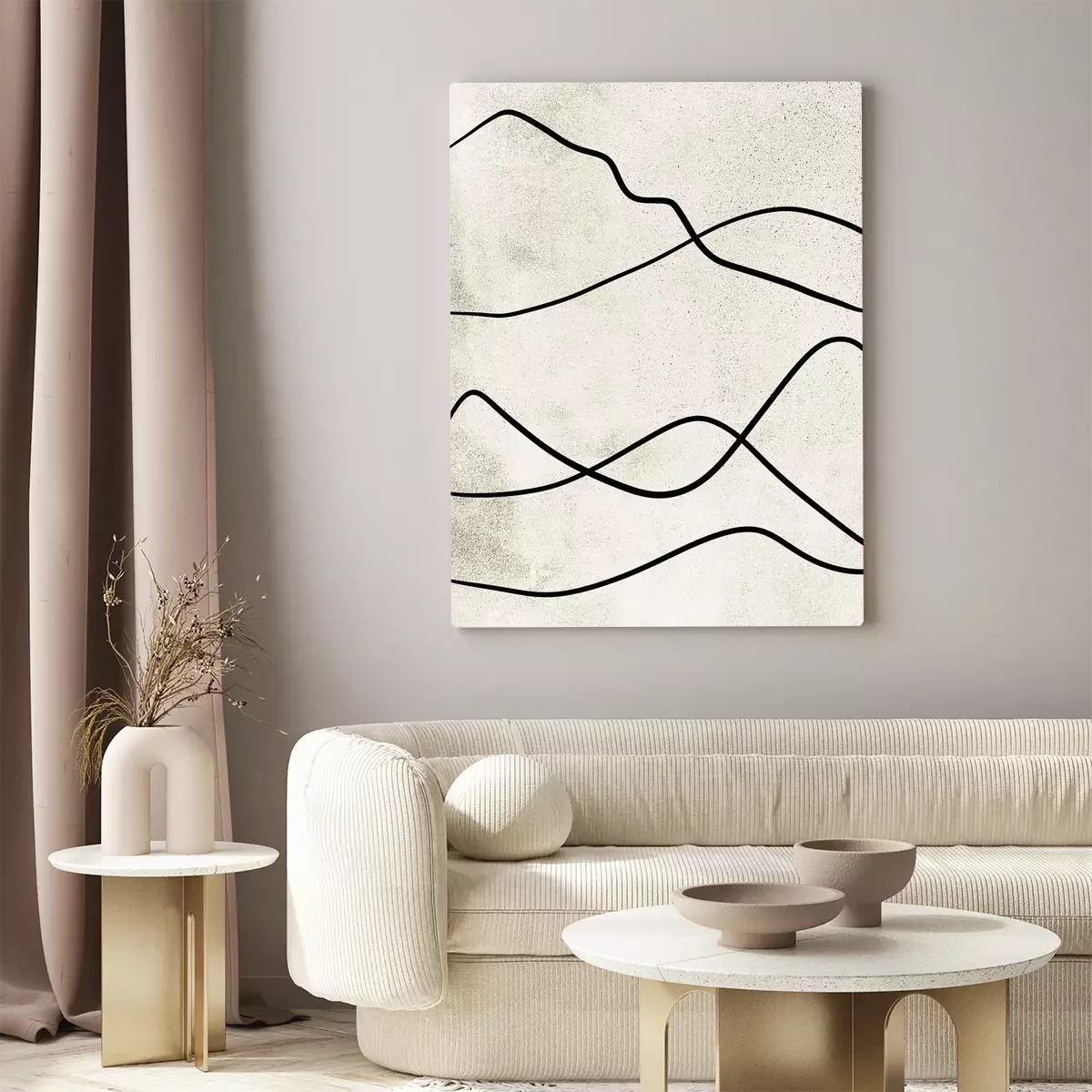 Canvas: Abstract woestijnlandschap met zwarte lijnen