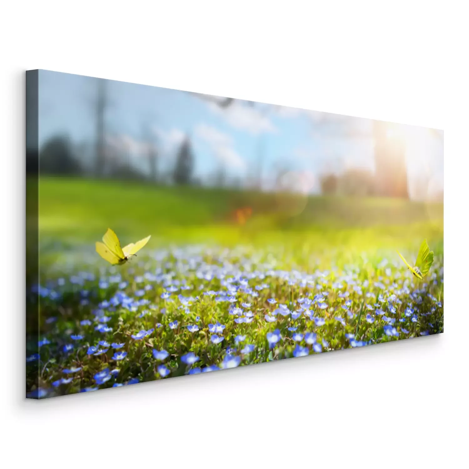 Canvas Abstracte aard lente Achtergrond; lente bloem en vlinder