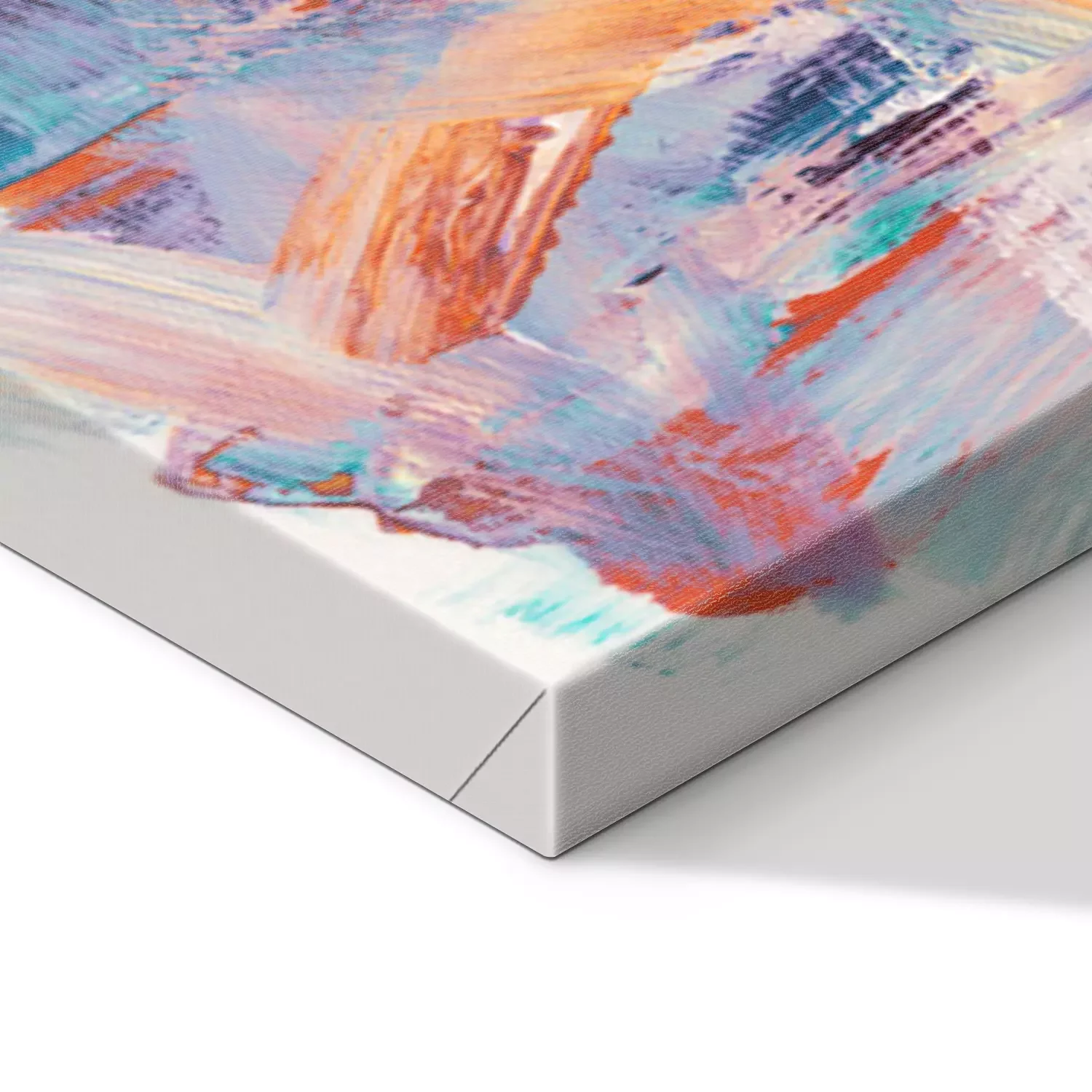 De print wordt aangebracht op hoogwaardig canvas dat op een schildersweefgetouw (spieraam) wordt gespannen. Omdat de print de zijranden bedekt, hoeft het ontwerp niet met een extra kader te worden omlijst. Wij raden ook composities aan die uit meerdere foto's bestaan en zo een coherente compositie vormen.