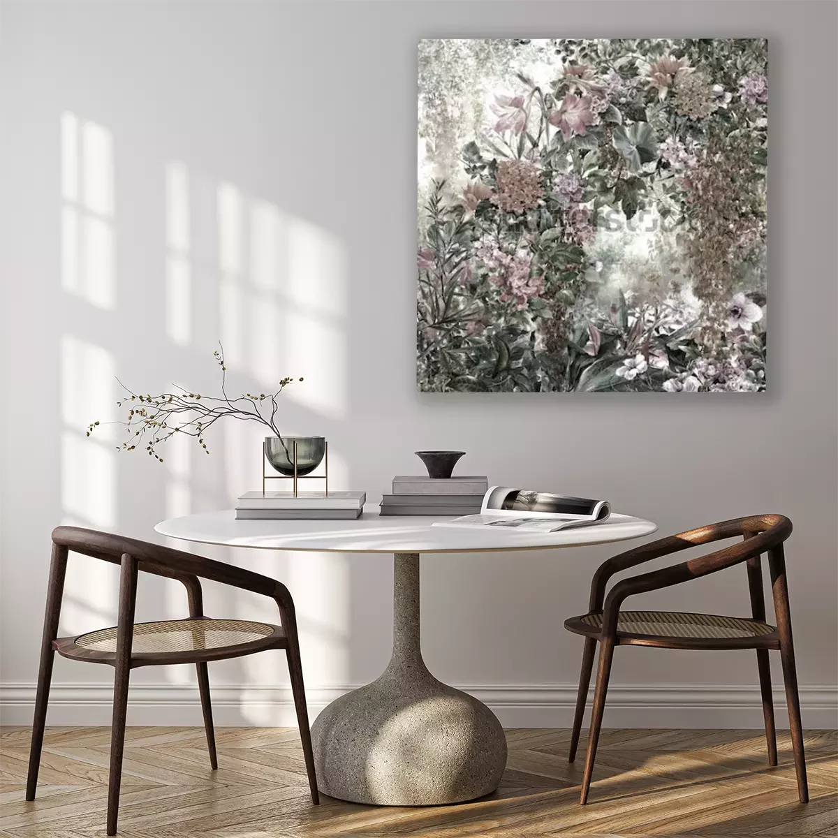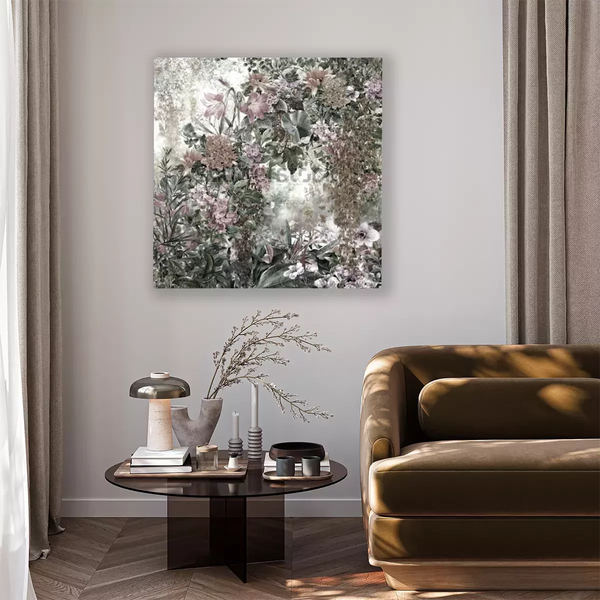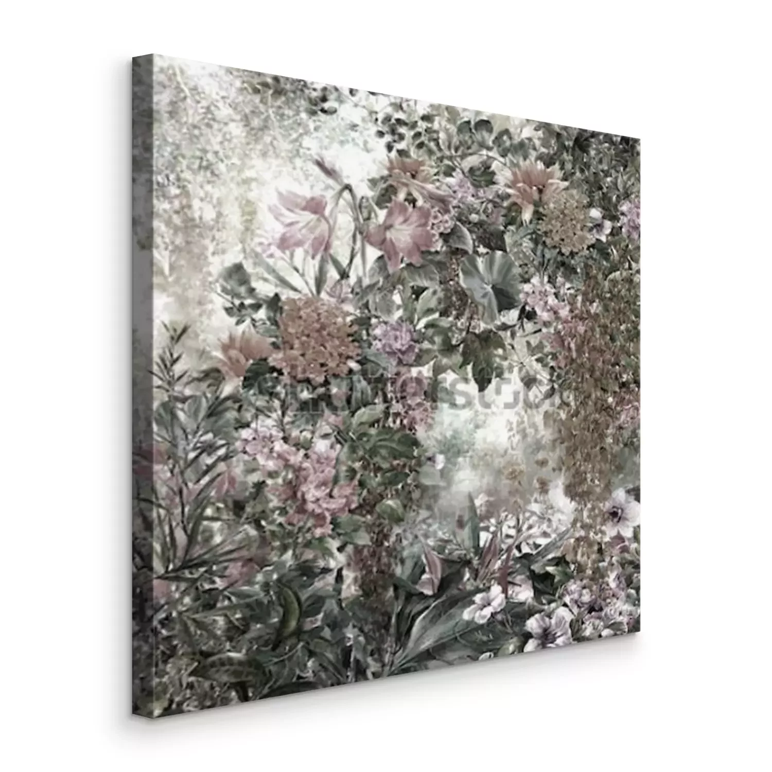 Canvas: Abstracte bloemen aquarel schilderij. Lente veelkleurige bloemen
