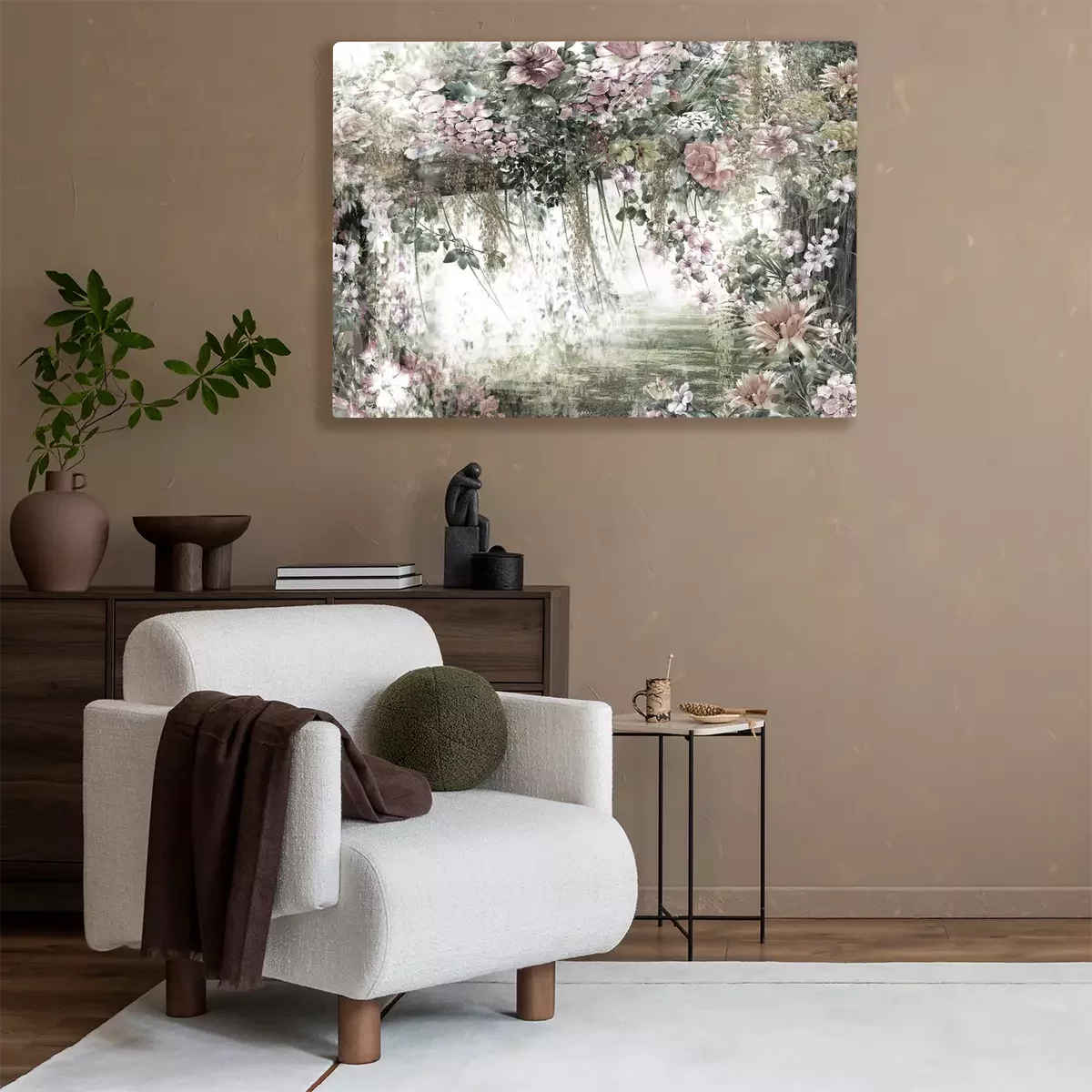 Canvas: Abstracte bloemen waterverf het schilderen. Spring veelkleurige bloemen