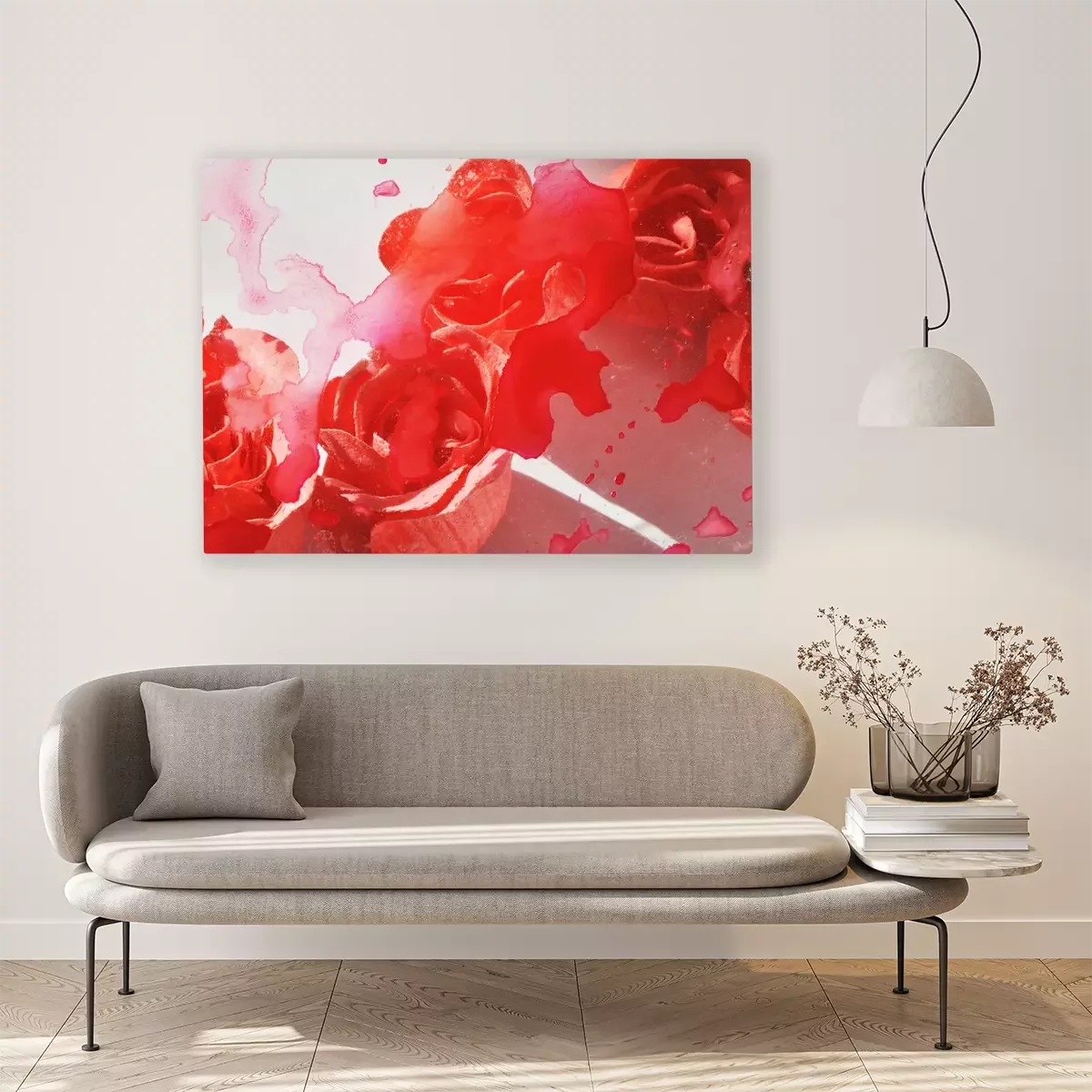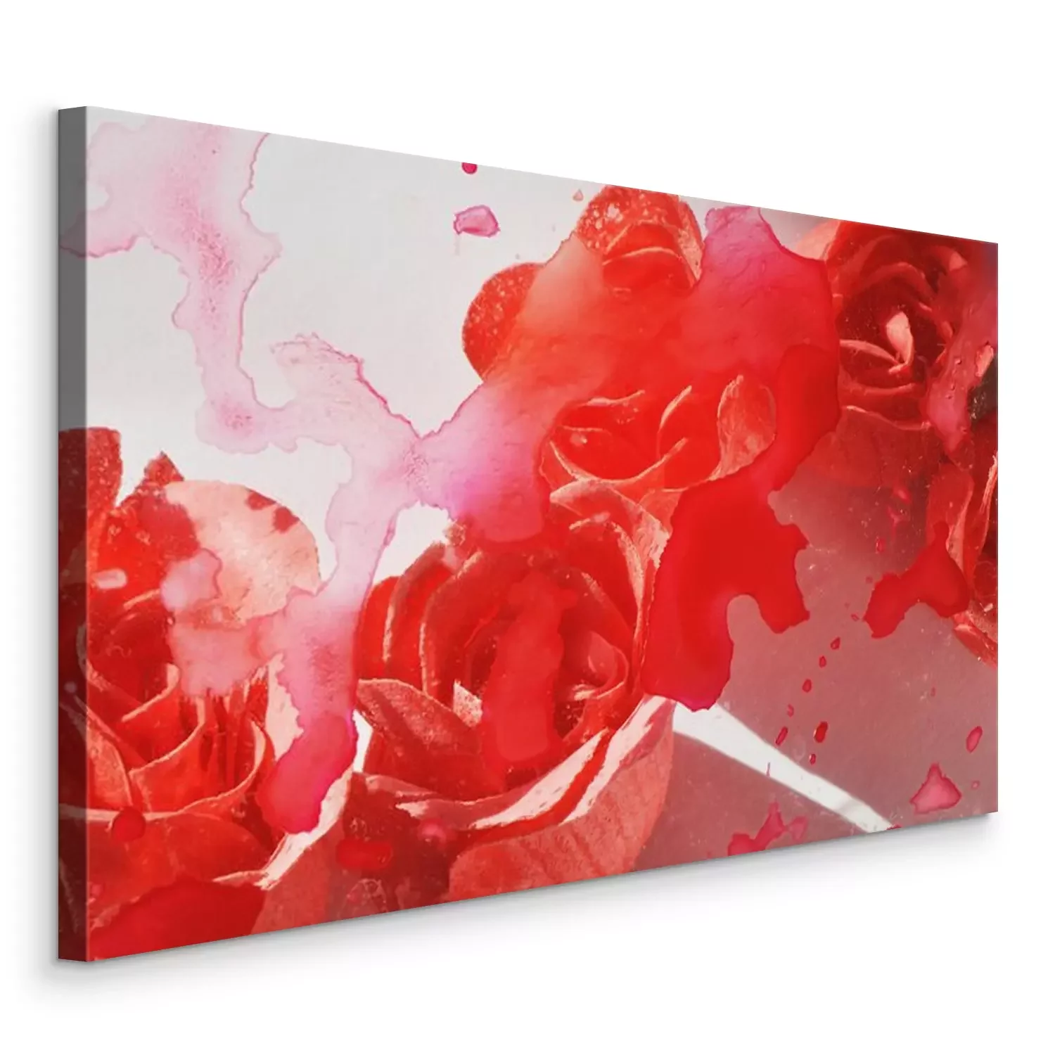 Canvas abstracte foto wazig en vlekken geschilderd rose bloemen op witte achtergrond
