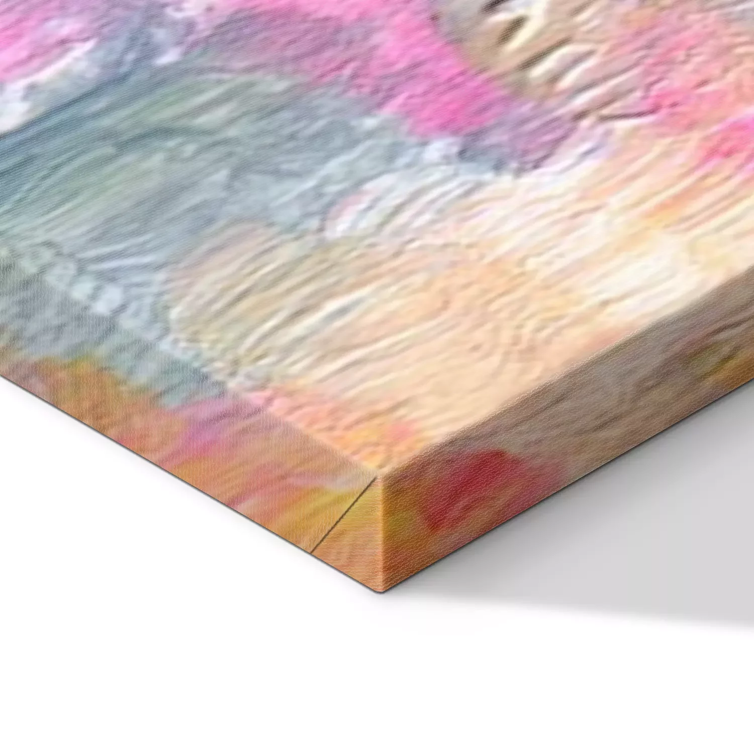 De print wordt aangebracht op hoogwaardig canvas dat op een schildersweefgetouw (spieraam) wordt gespannen. Omdat de print de zijranden bedekt, hoeft het ontwerp niet met een extra kader te worden omlijst. Wij raden ook composities aan die uit meerdere foto's bestaan en zo een coherente compositie vormen.