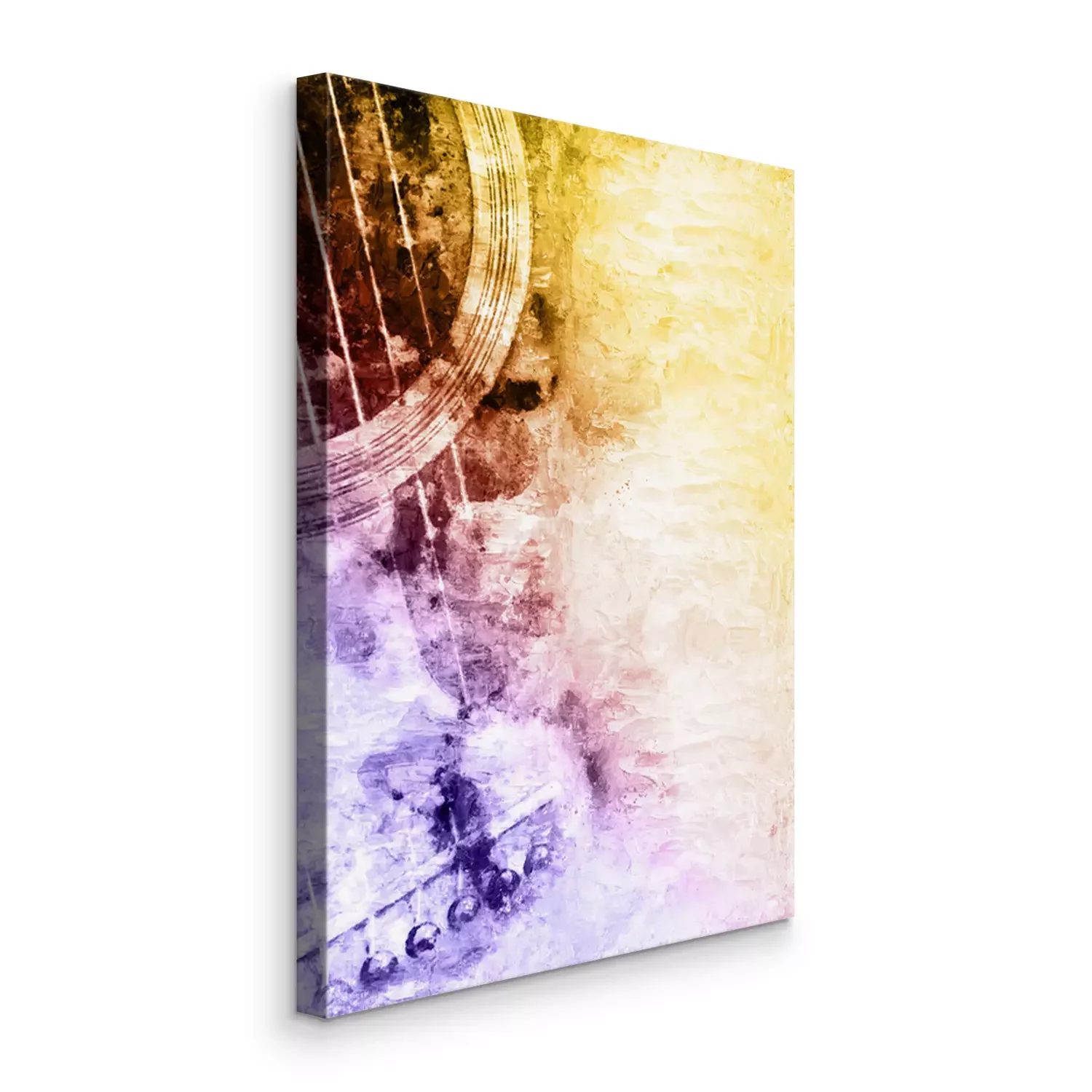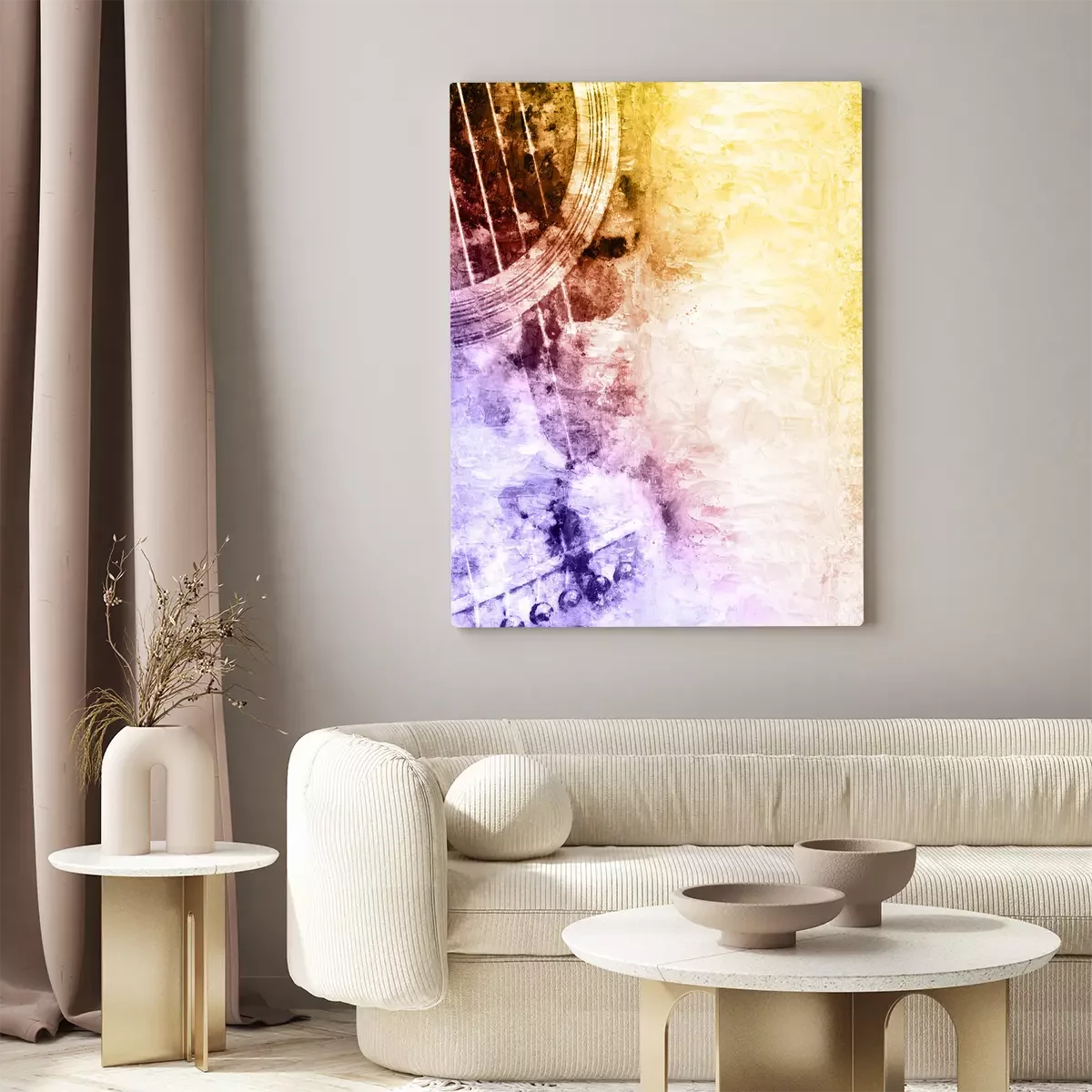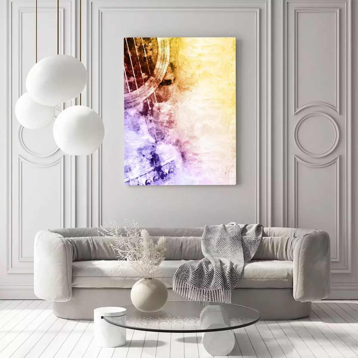 Canvas: Abstracte gitaar op de voorgrond Close-up op olie Aquarel achtergrond schilderen ...