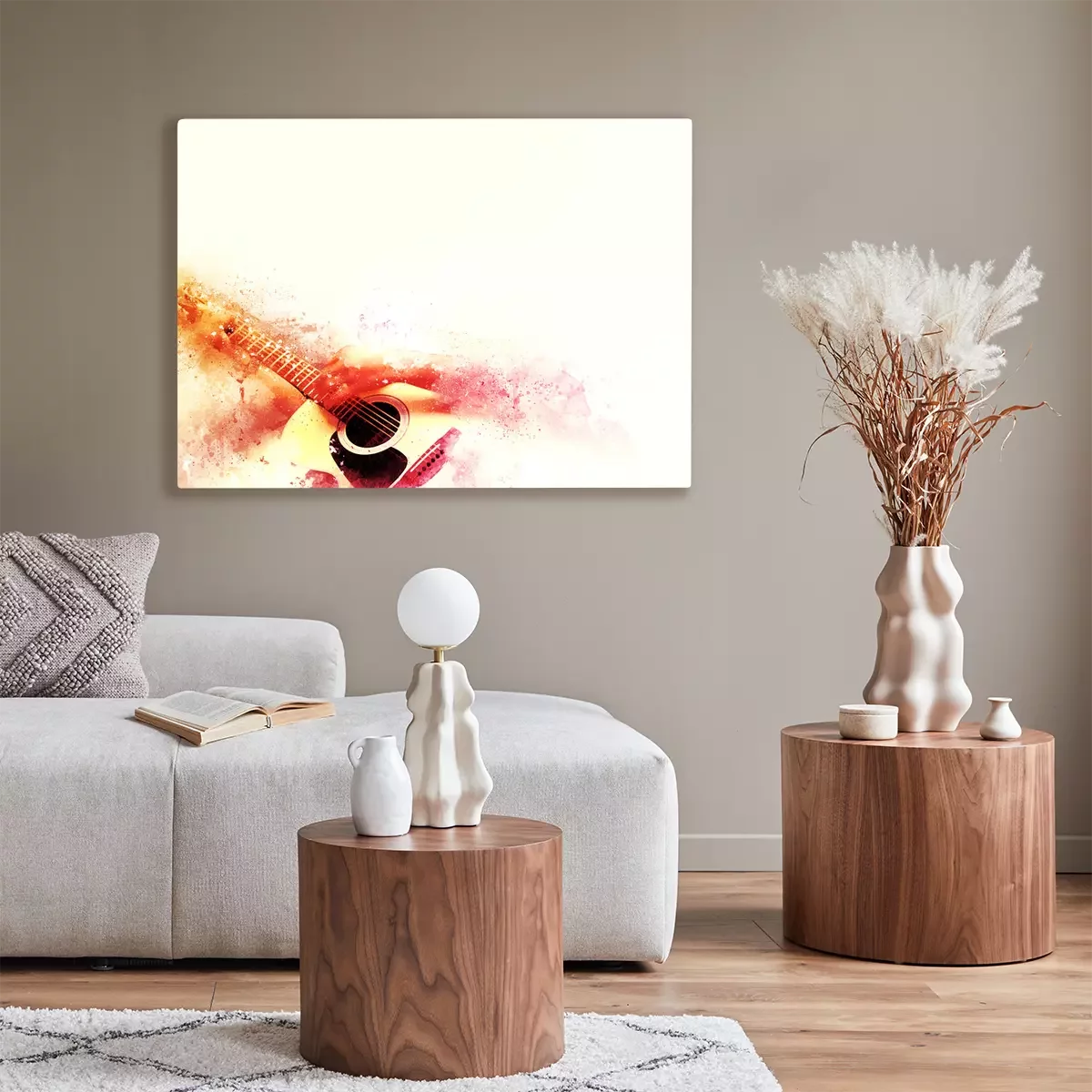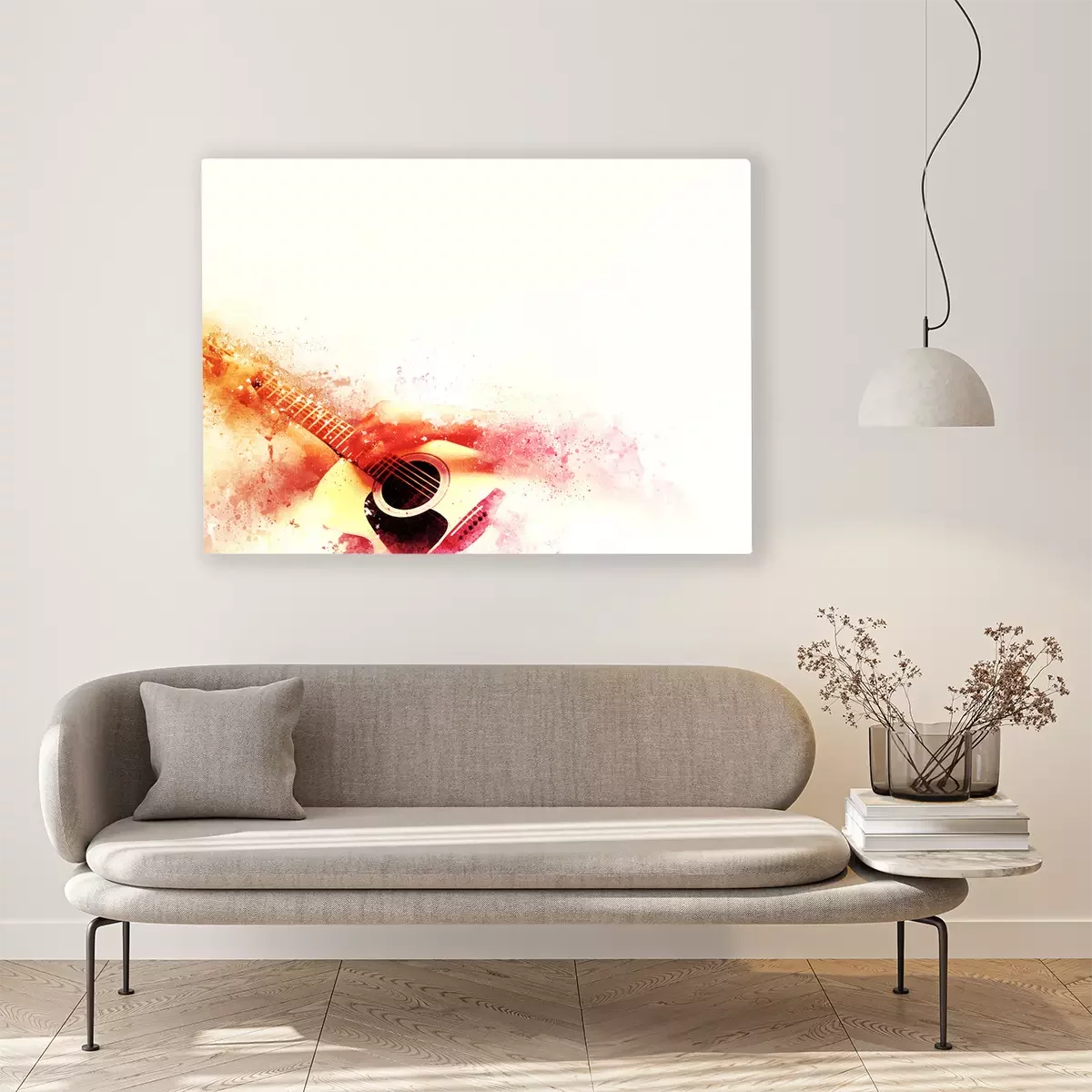 Canvas Abstracte gitarist op de voorgrond. Close-up, Waterverfverf