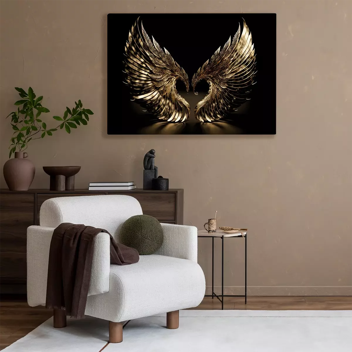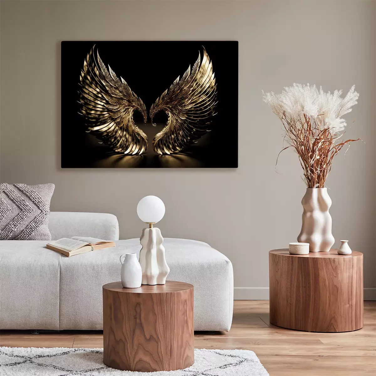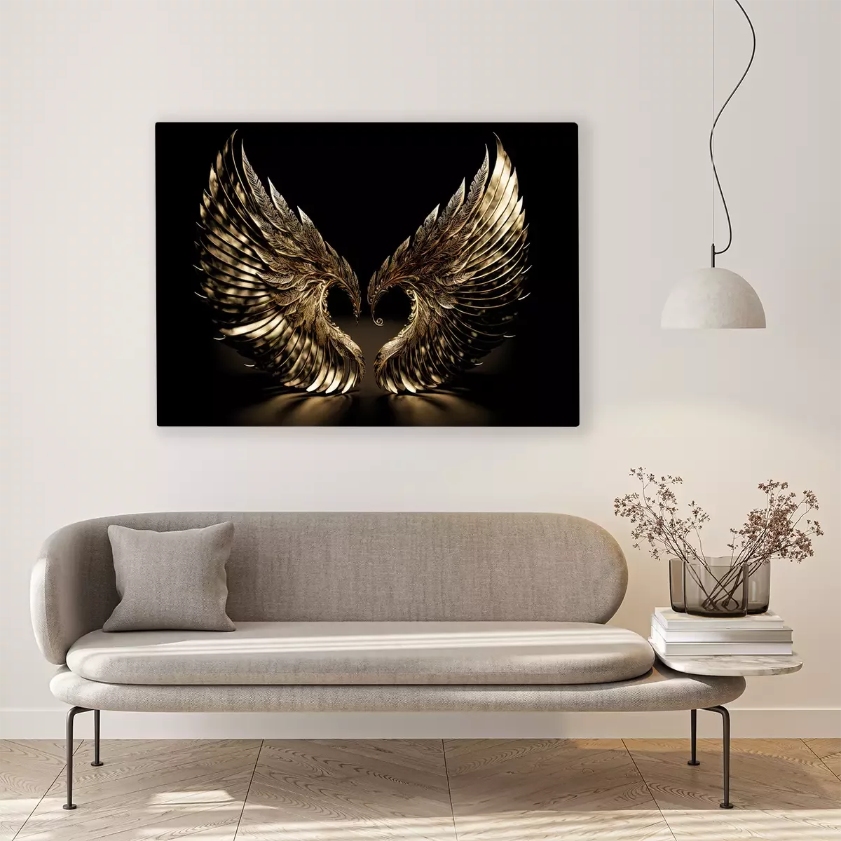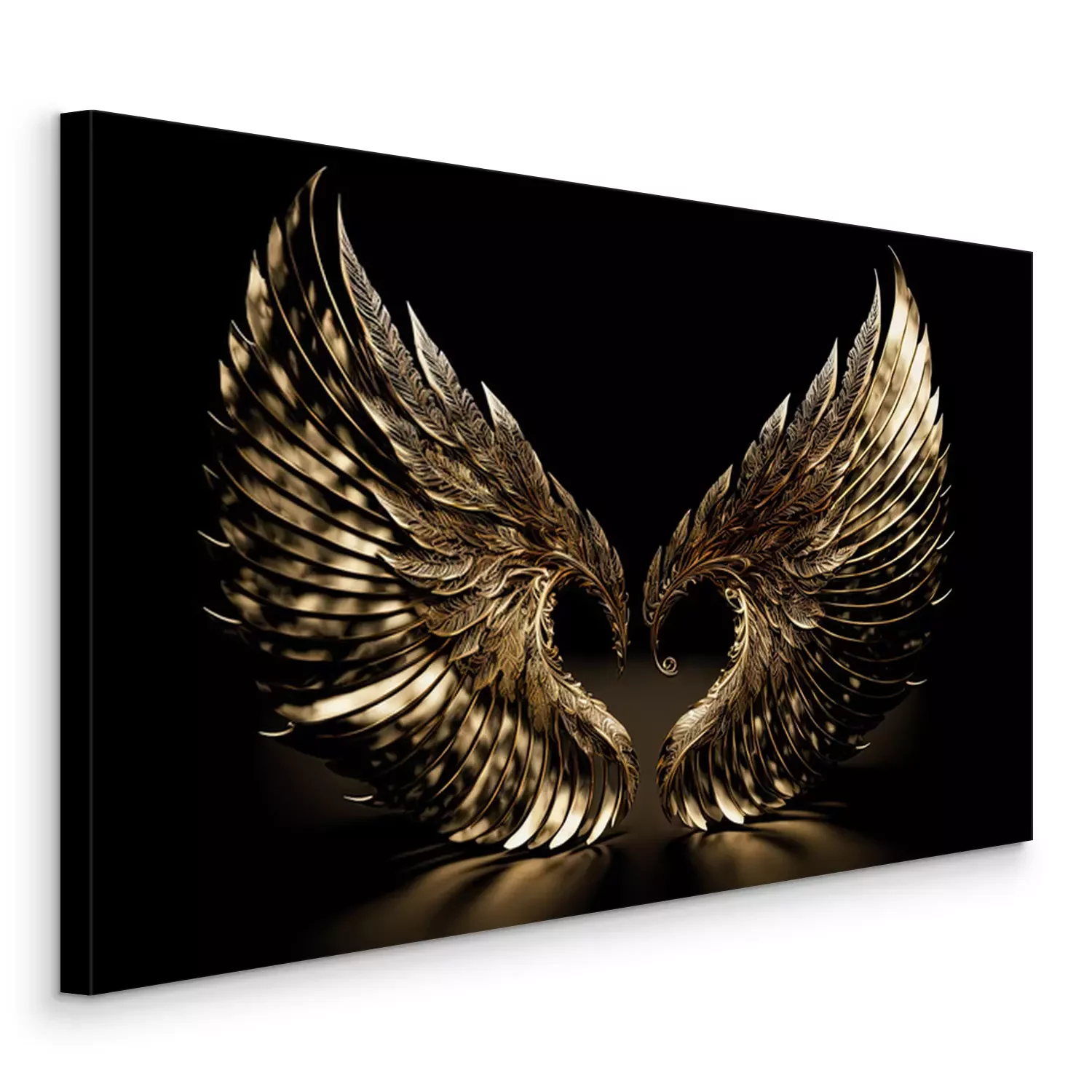 Canvas: Abstracte gouden vleugels op een zwarte achtergrond