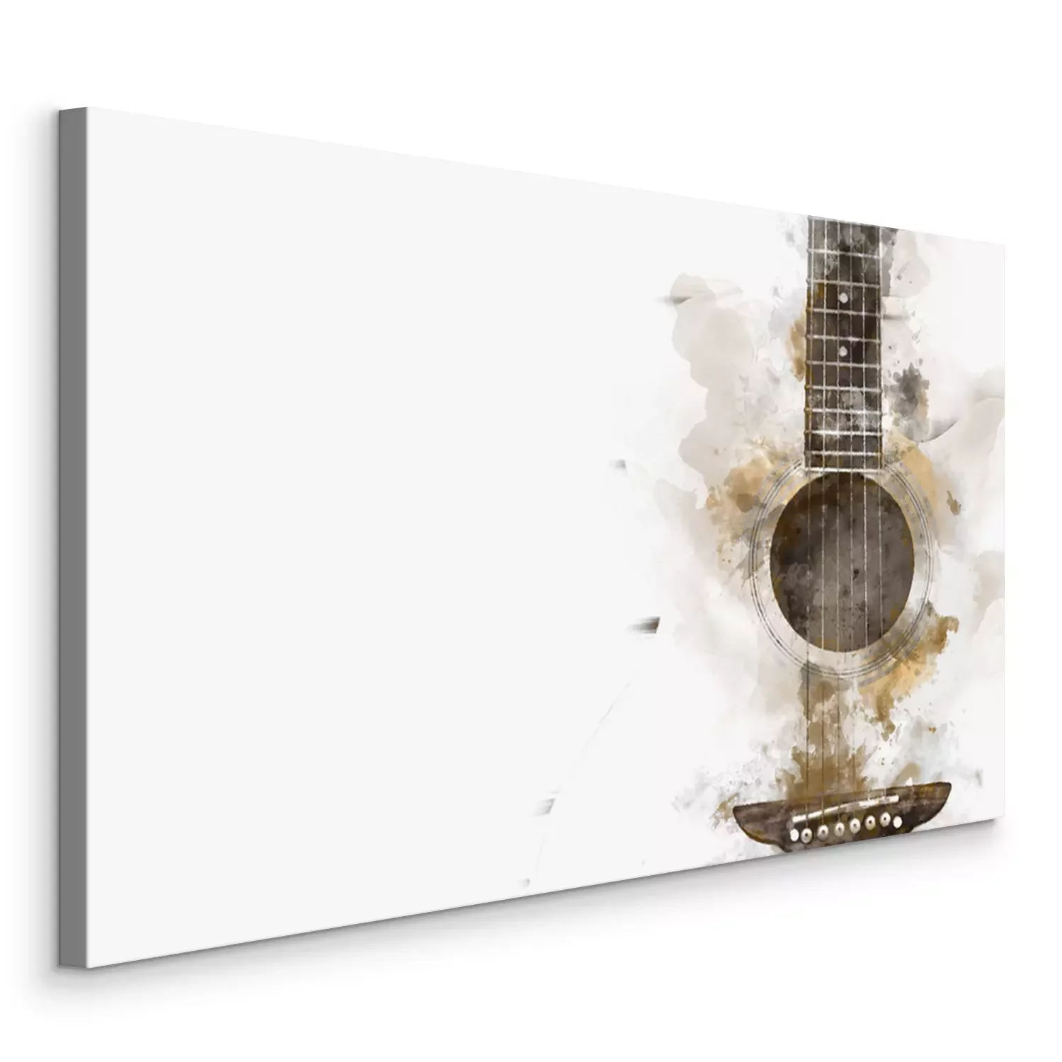 Canvas: Abstracte kleurrijke gitaar op de voorgrond op aquarel achtergrond en digitale illustratie penseel to art.