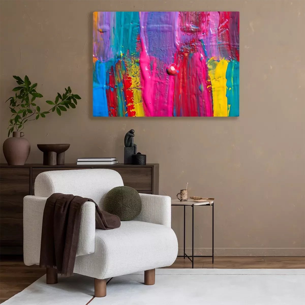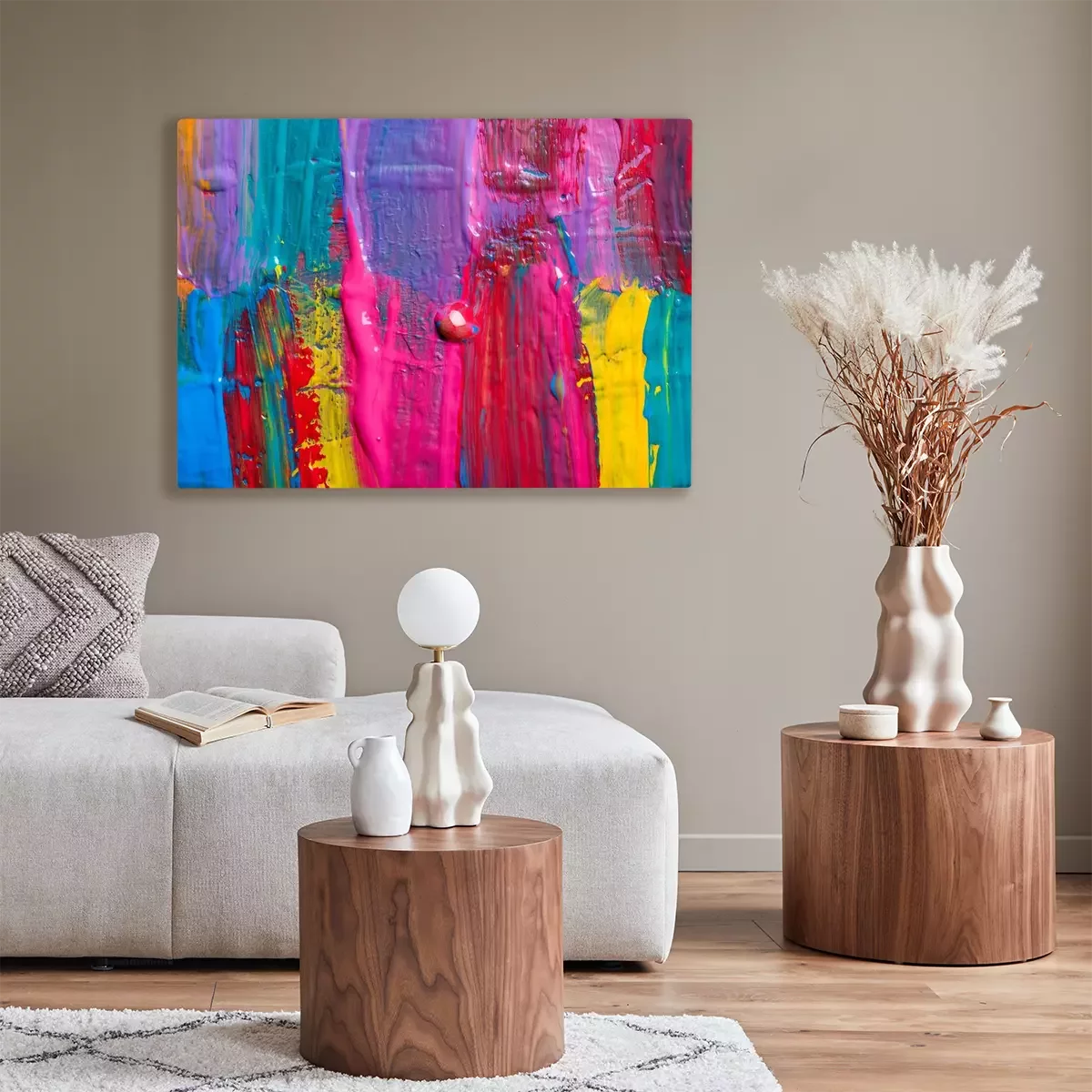 De print wordt aangebracht op hoogwaardig canvas dat op een schildersweefgetouw (spieraam) wordt gespannen. Omdat de print de zijranden bedekt, hoeft het ontwerp niet met een extra kader te worden omlijst. Wij raden ook composities aan die uit meerdere foto's bestaan en zo een coherente compositie vormen.