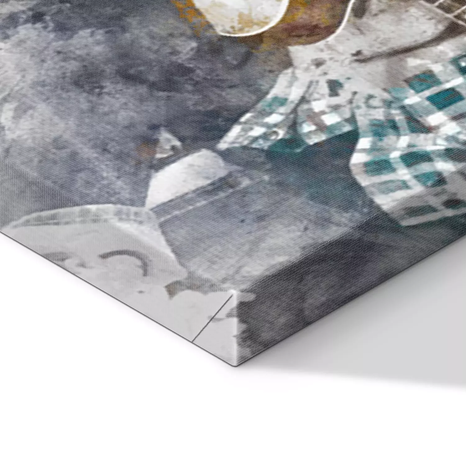 De print wordt aangebracht op hoogwaardig canvas dat op een schildersweefgetouw (spieraam) wordt gespannen. Omdat de print de zijranden bedekt, hoeft het ontwerp niet met een extra kader te worden omlijst. Wij raden ook composities aan die uit meerdere foto's bestaan en zo een coherente compositie vormen.