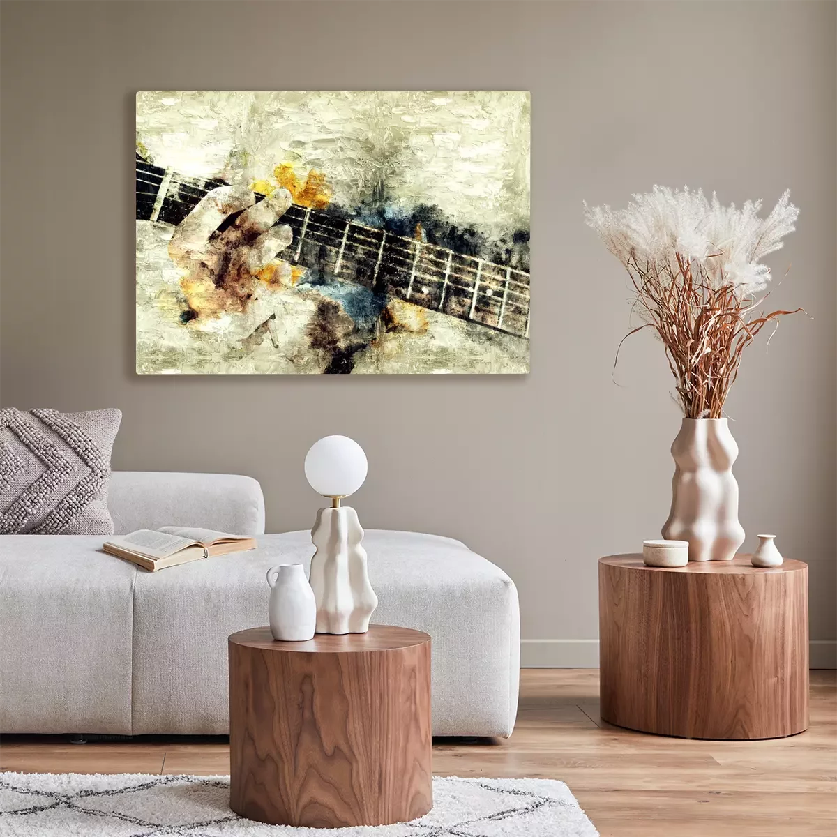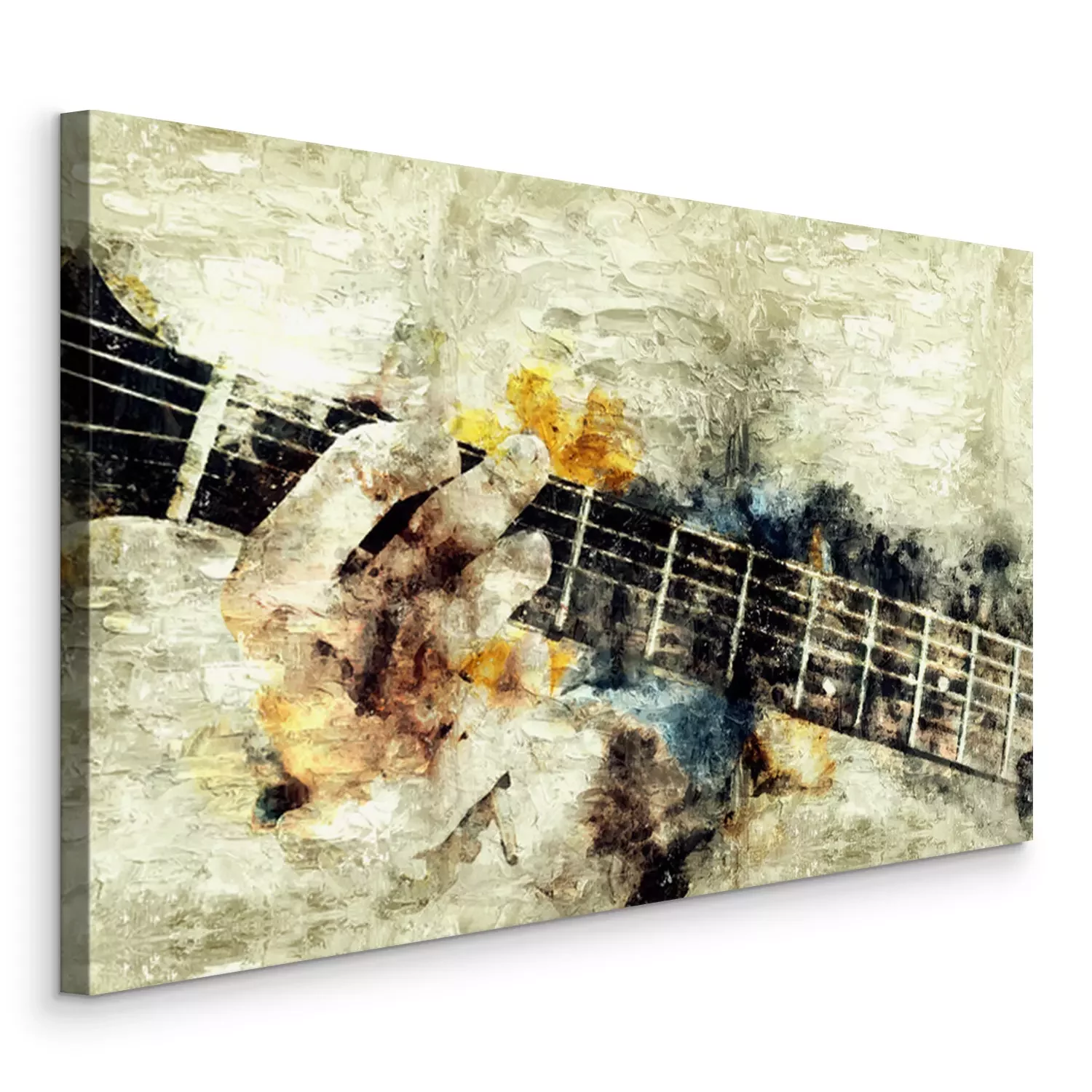 Canvas: Abstracte mooie gitaarspelen op de voorgrond op aquarel achtergrond en digitale illustratie penseel to kunst ...