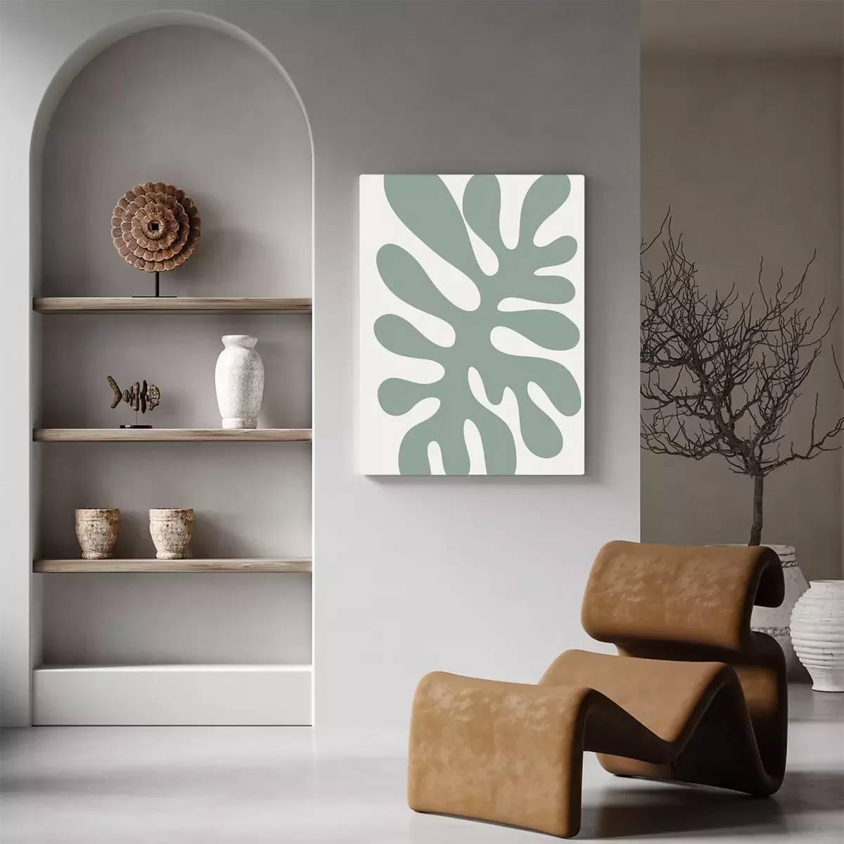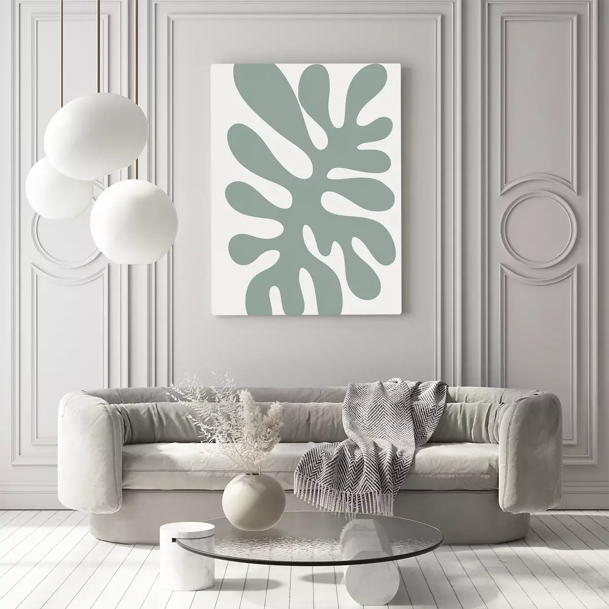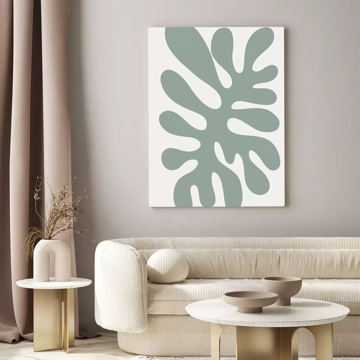 Canvas: Abstracte plant in saliegroen
