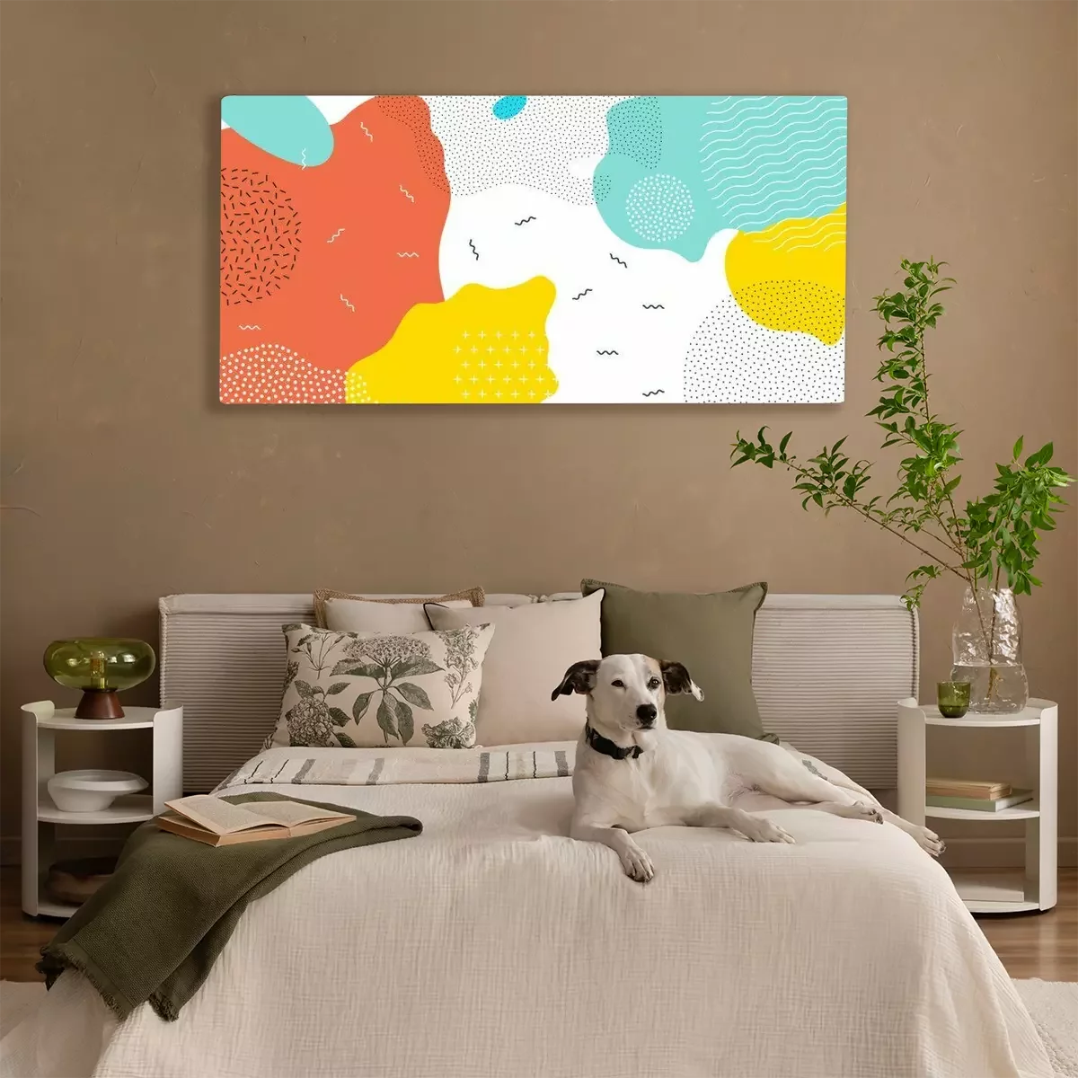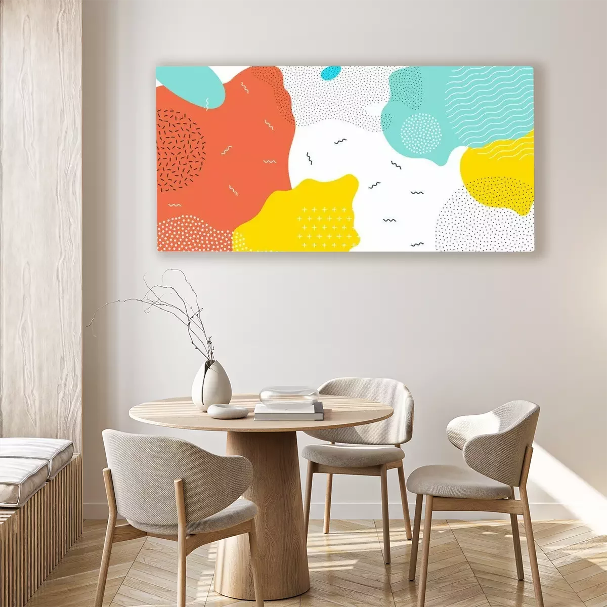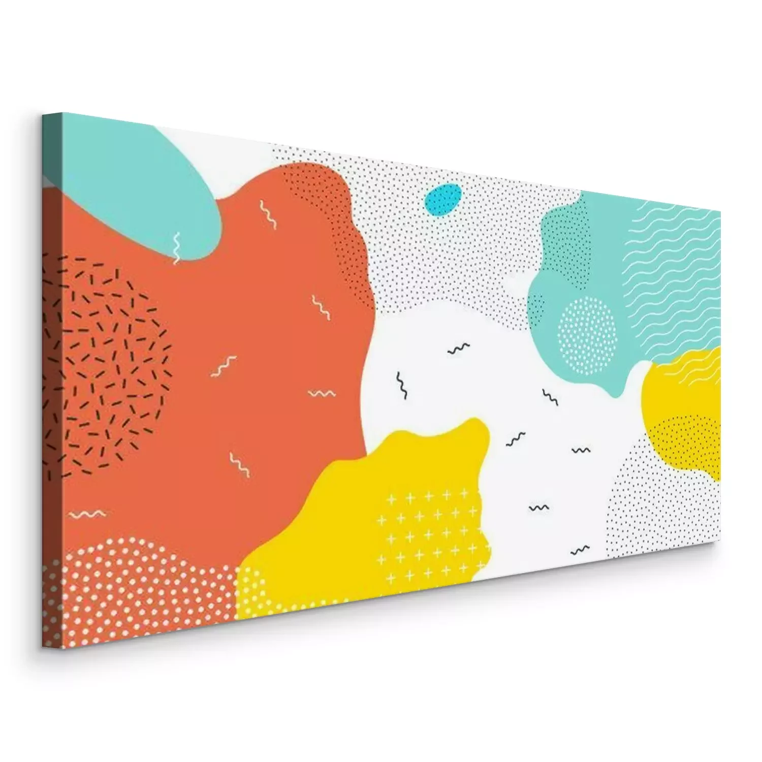 Canvas Abstracte pop-art kleur verf splash patroon achtergrond. Vector overlay geometrisch ontwerp van de trendy stijl Memphis 80s-90s