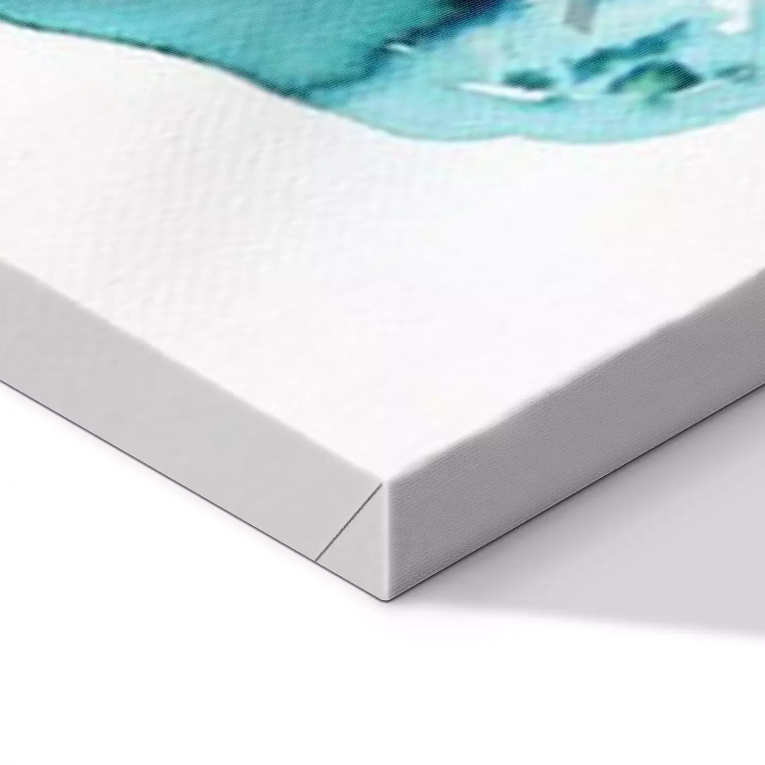 De print wordt aangebracht op hoogwaardig canvas dat op een schildersweefgetouw (spieraam) wordt gespannen. Omdat de print de zijranden bedekt, hoeft het ontwerp niet met een extra kader te worden omlijst. Wij raden ook composities aan die uit meerdere foto's bestaan en zo een coherente compositie vormen.