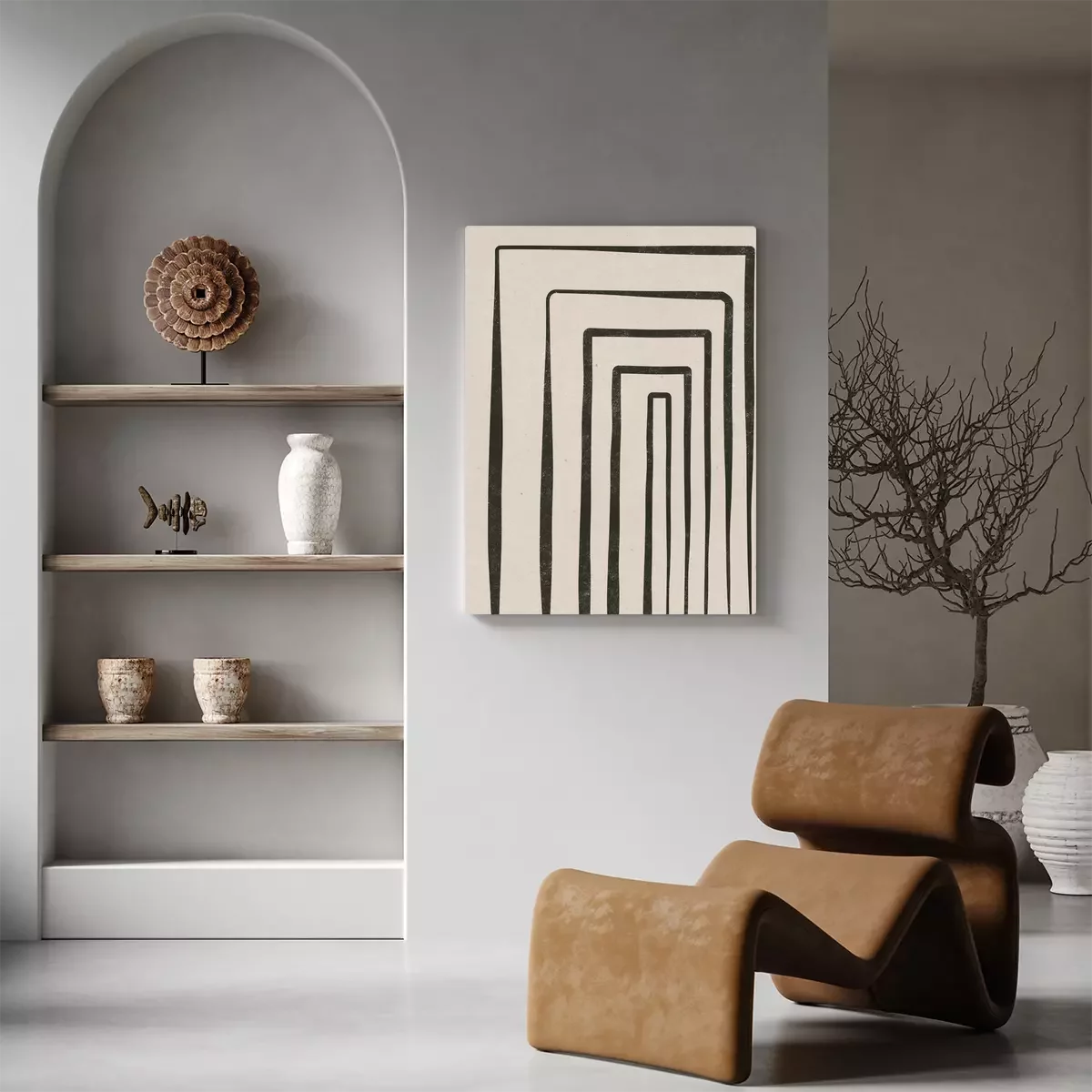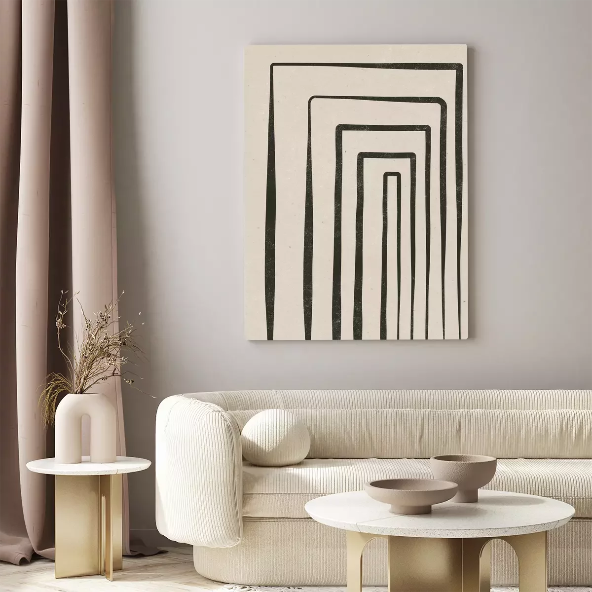 Abstracte zwarte rechthoeken op een beige achtergrond