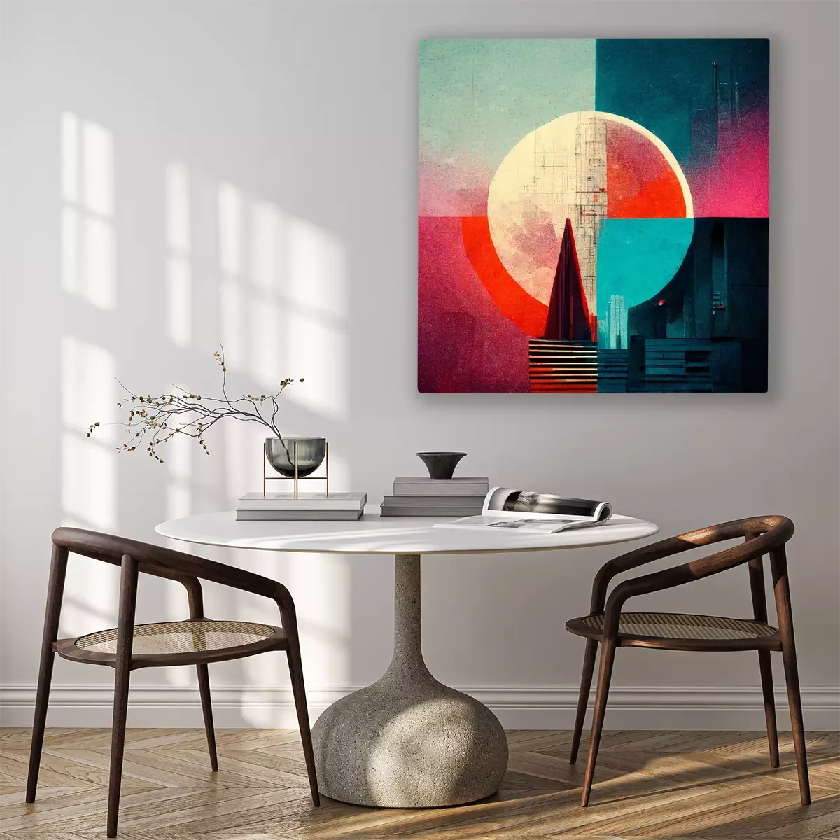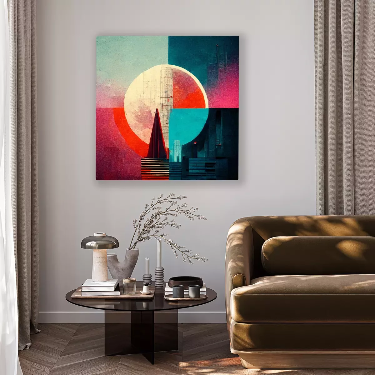 Canvas Abstractie met een cirkel in het midden