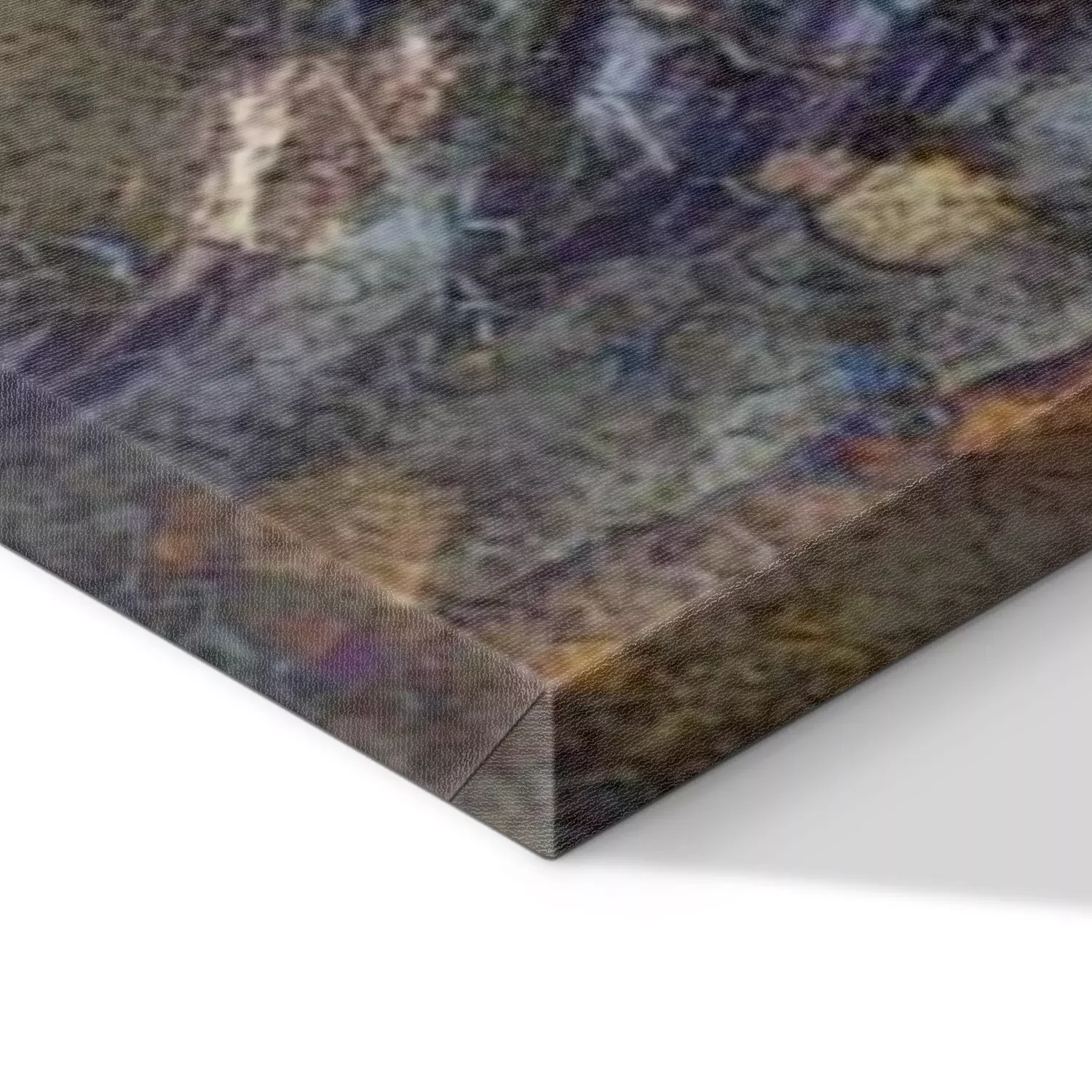 De print wordt aangebracht op hoogwaardig canvas dat op een schildersweefgetouw (spieraam) wordt gespannen. Omdat de print de zijranden bedekt, hoeft het ontwerp niet met een extra kader te worden omlijst. Wij raden ook composities aan die uit meerdere foto's bestaan en zo een coherente compositie vormen.