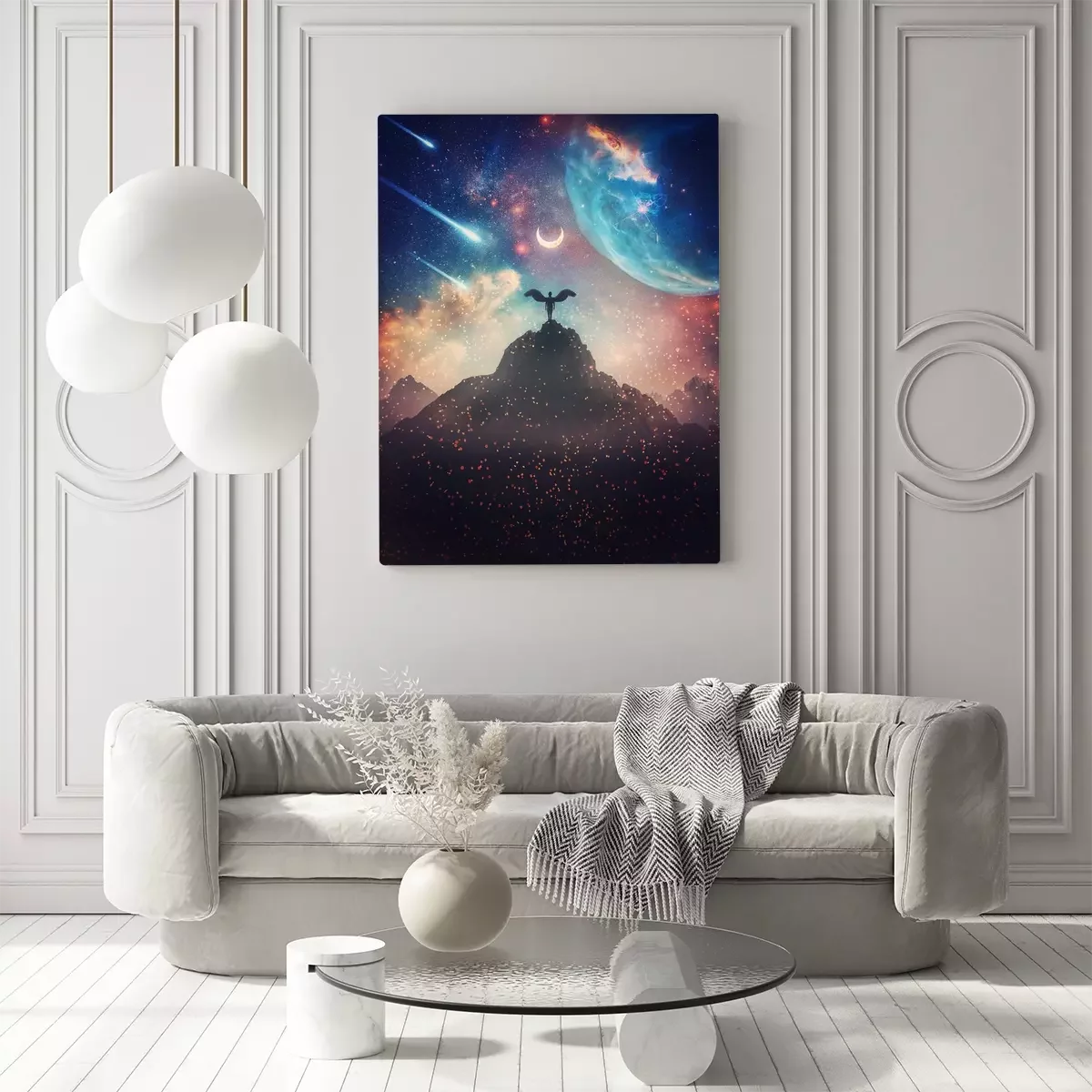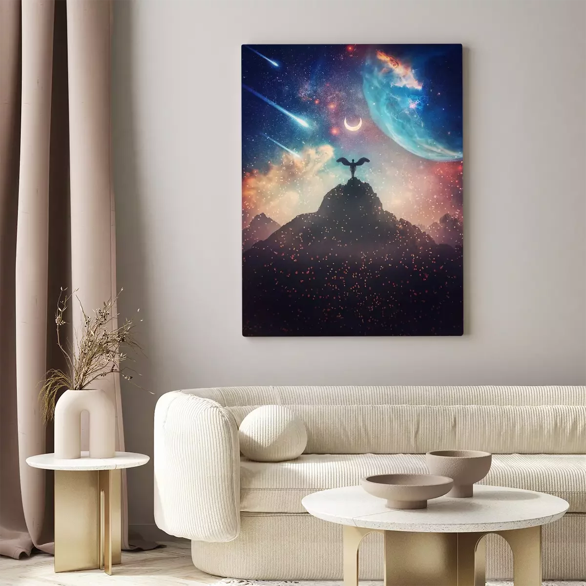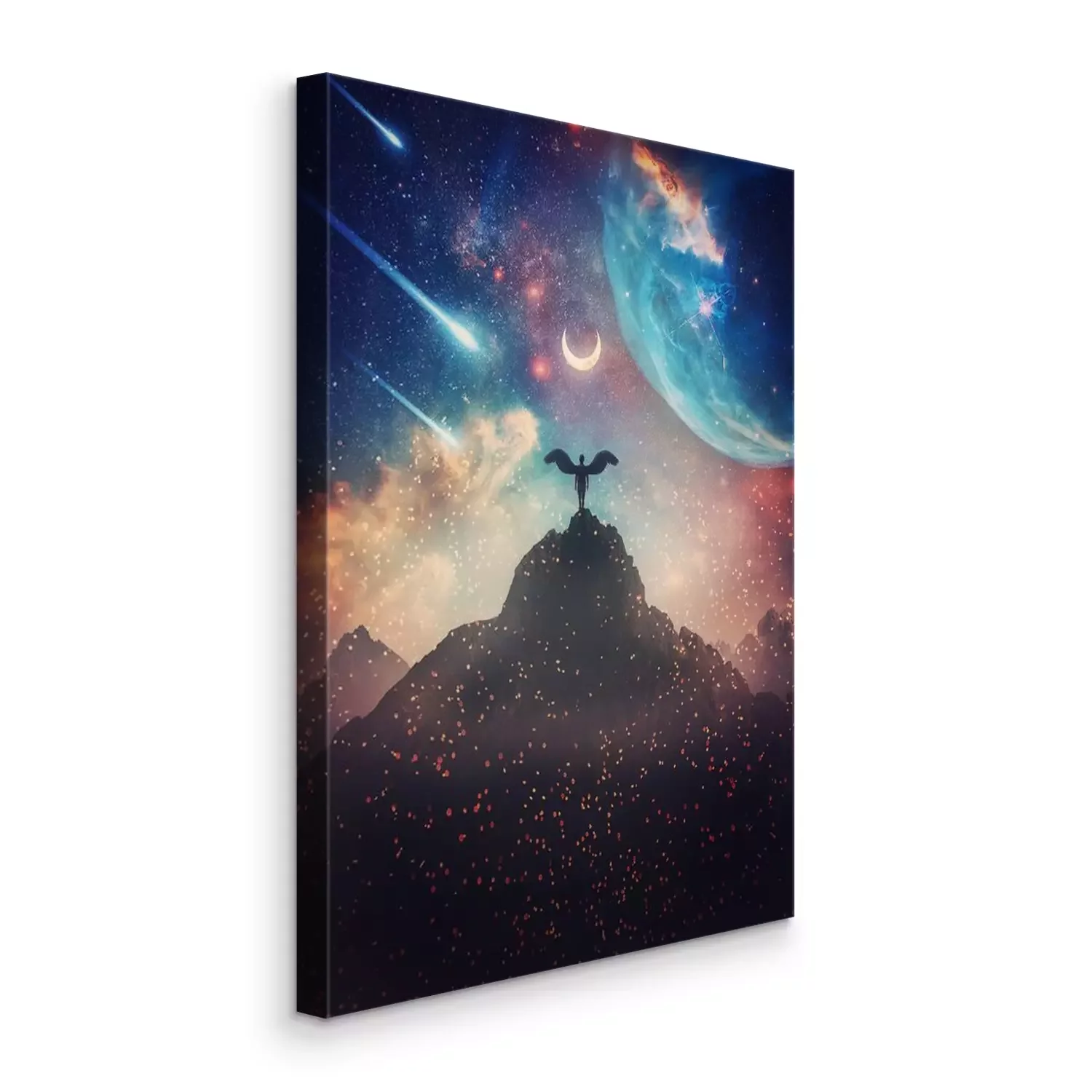 Canvas Abstractie van een engel als wonderbaarlijke verschijning op de top van een berg