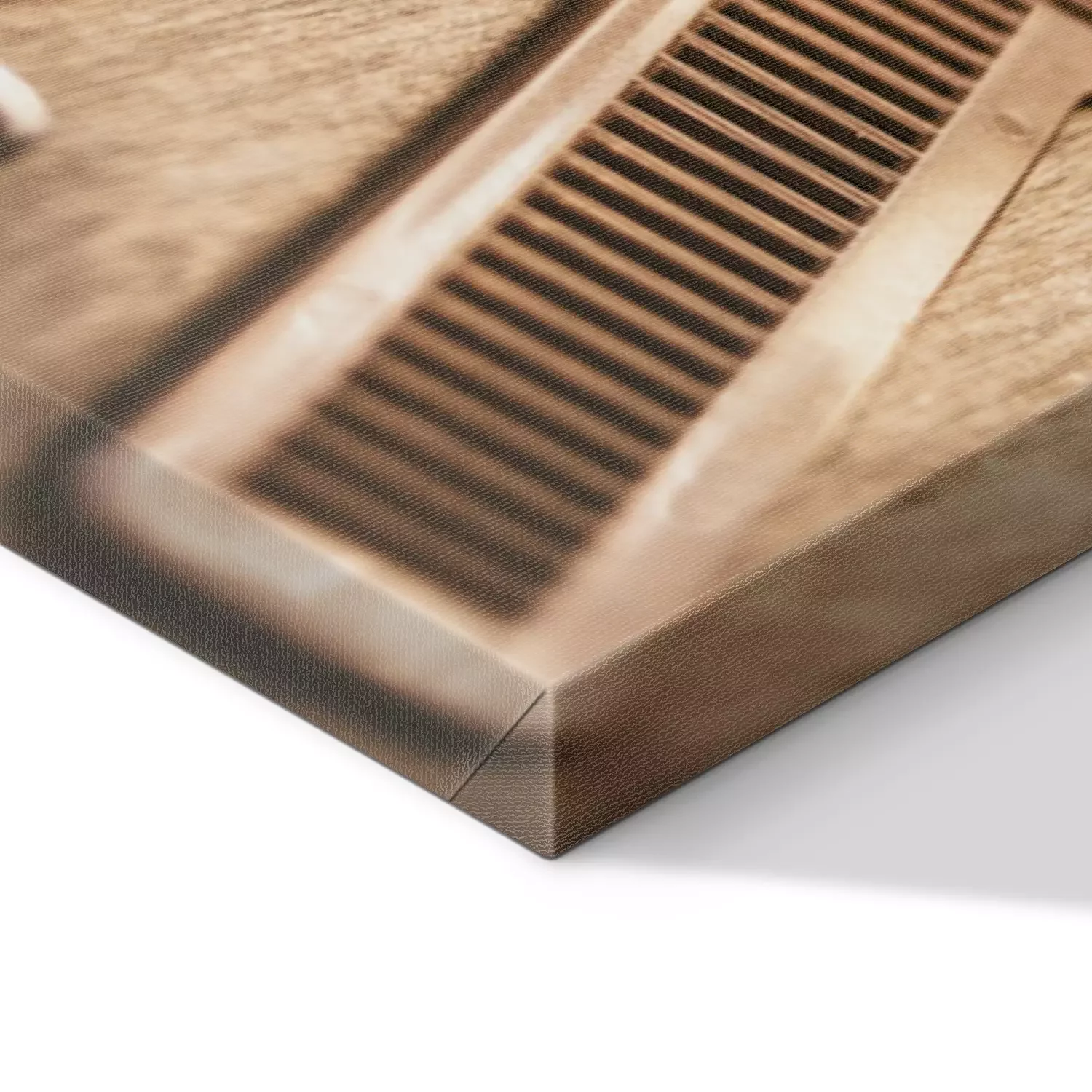 De print wordt aangebracht op hoogwaardig canvas dat op een schildersweefgetouw (spieraam) wordt gespannen. Omdat de print de zijranden bedekt, hoeft het ontwerp niet met een extra kader te worden omlijst. Wij raden ook composities aan die uit meerdere foto's bestaan en zo een coherente compositie vormen.