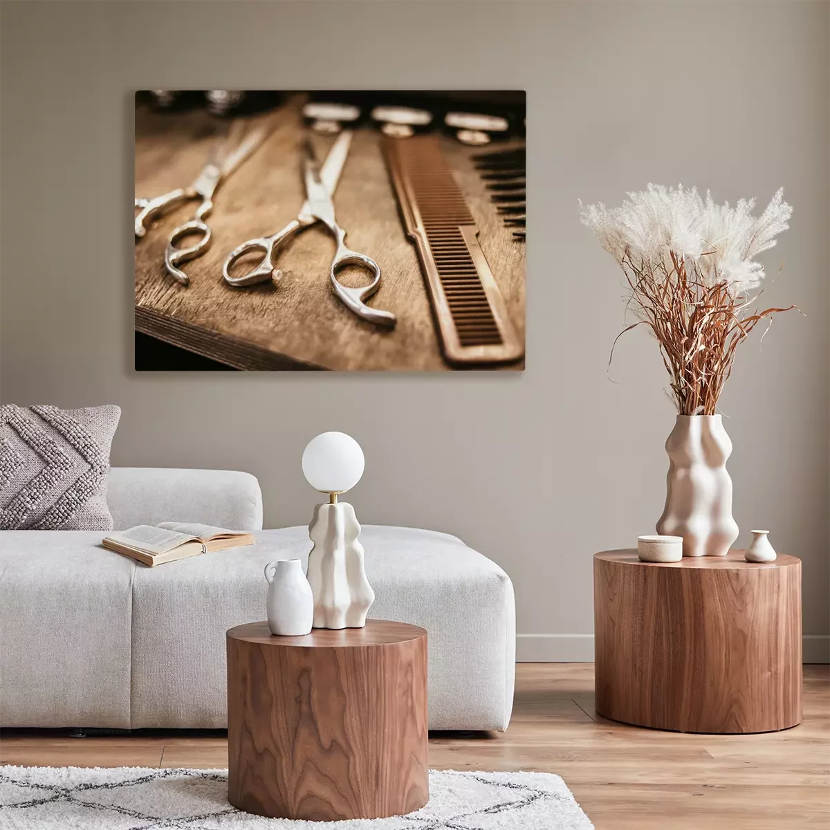 Canvas: Accessories for haircuts are on the shelf in the salon