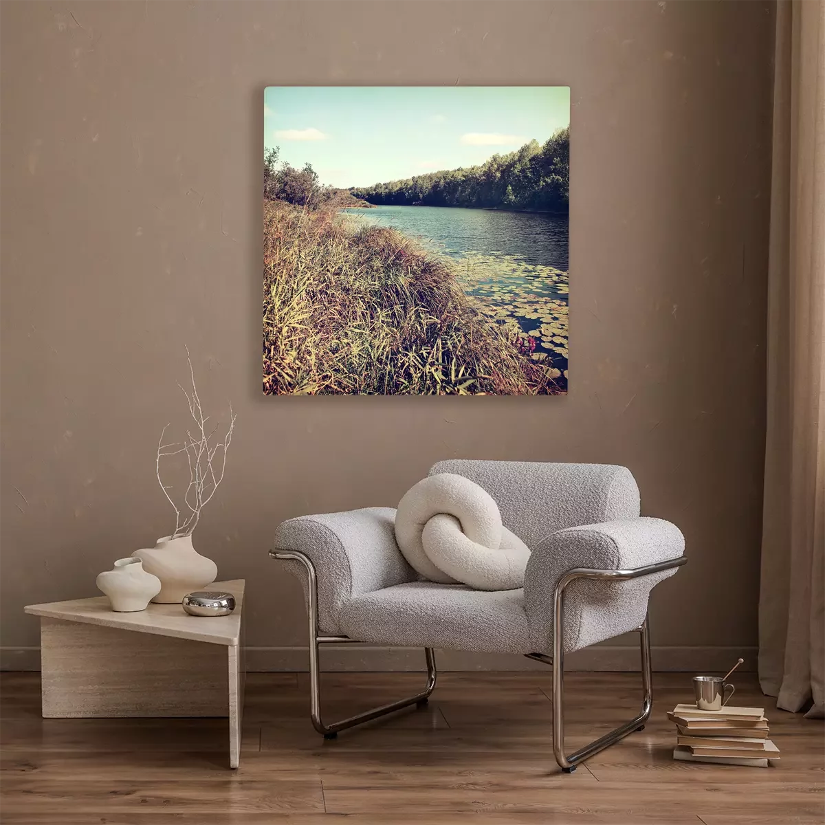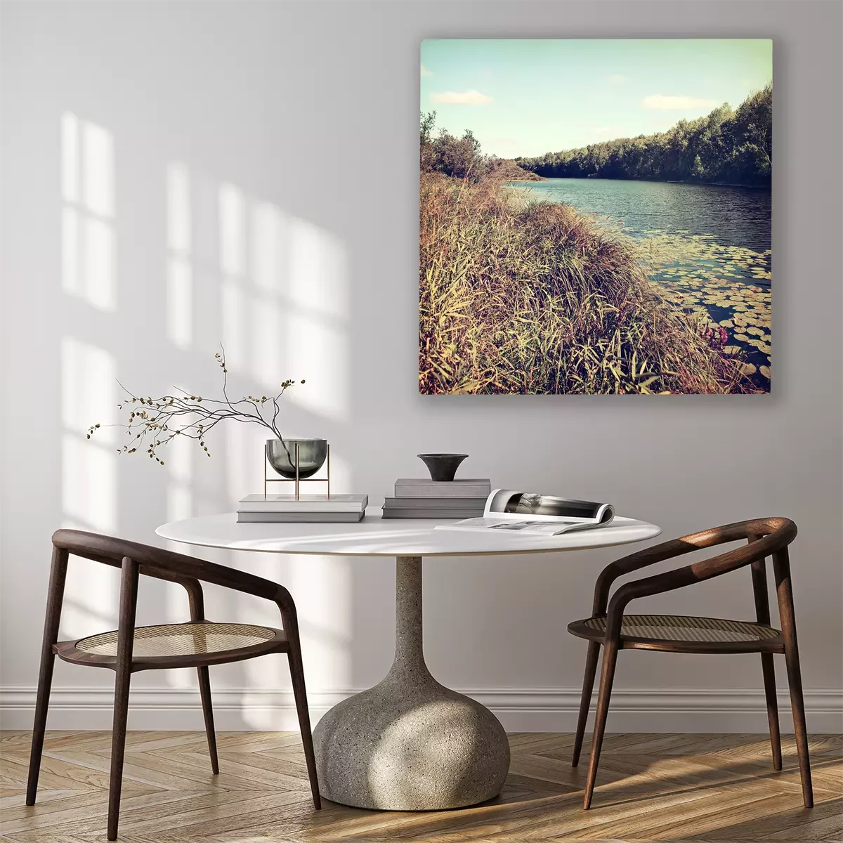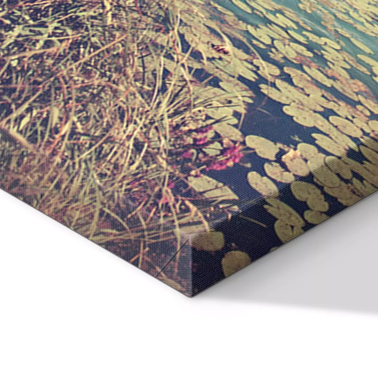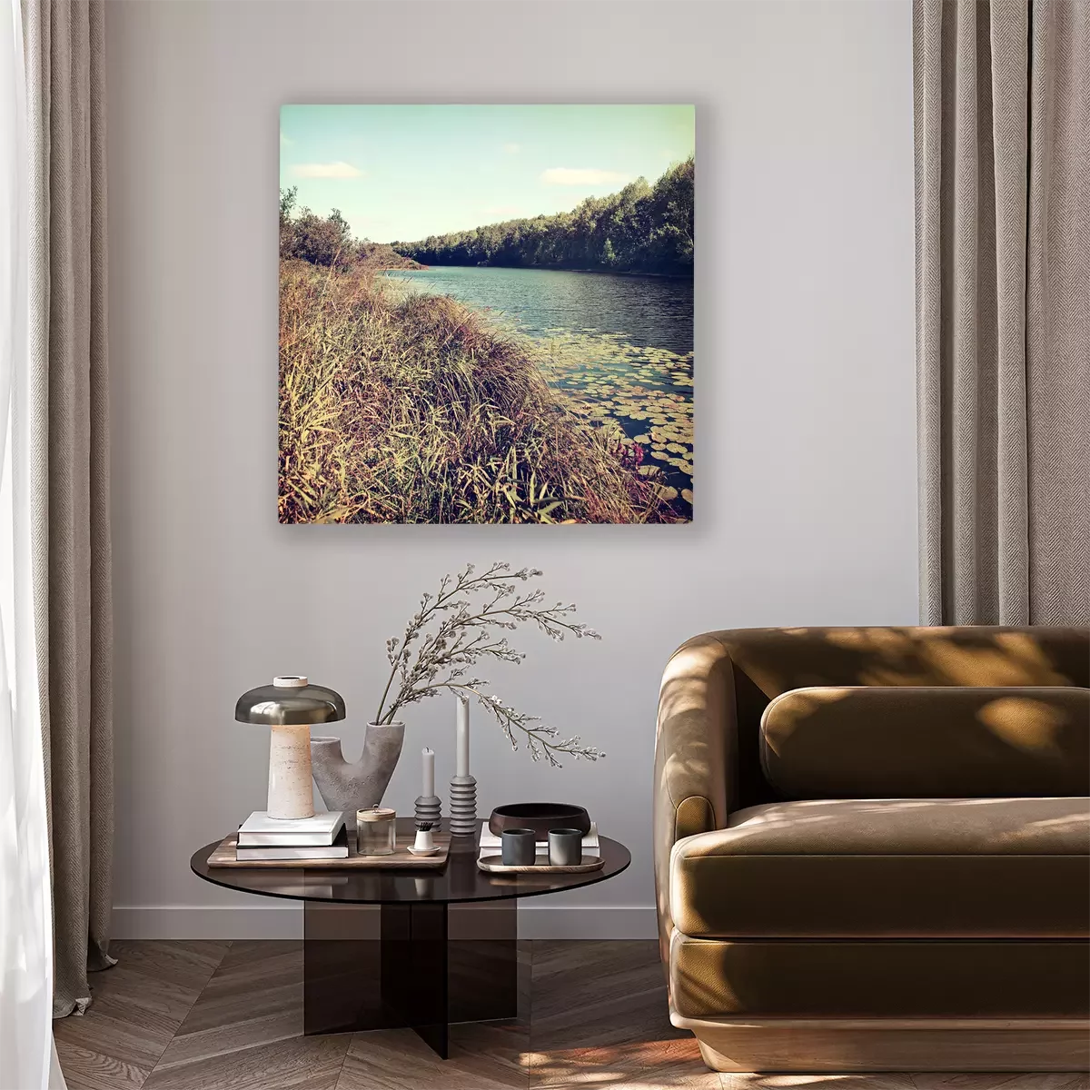 De print wordt aangebracht op hoogwaardig canvas dat op een schildersweefgetouw (spieraam) wordt gespannen. Omdat de print de zijranden bedekt, hoeft het ontwerp niet met een extra kader te worden omlijst. Wij raden ook composities aan die uit meerdere foto's bestaan en zo een coherente compositie vormen.