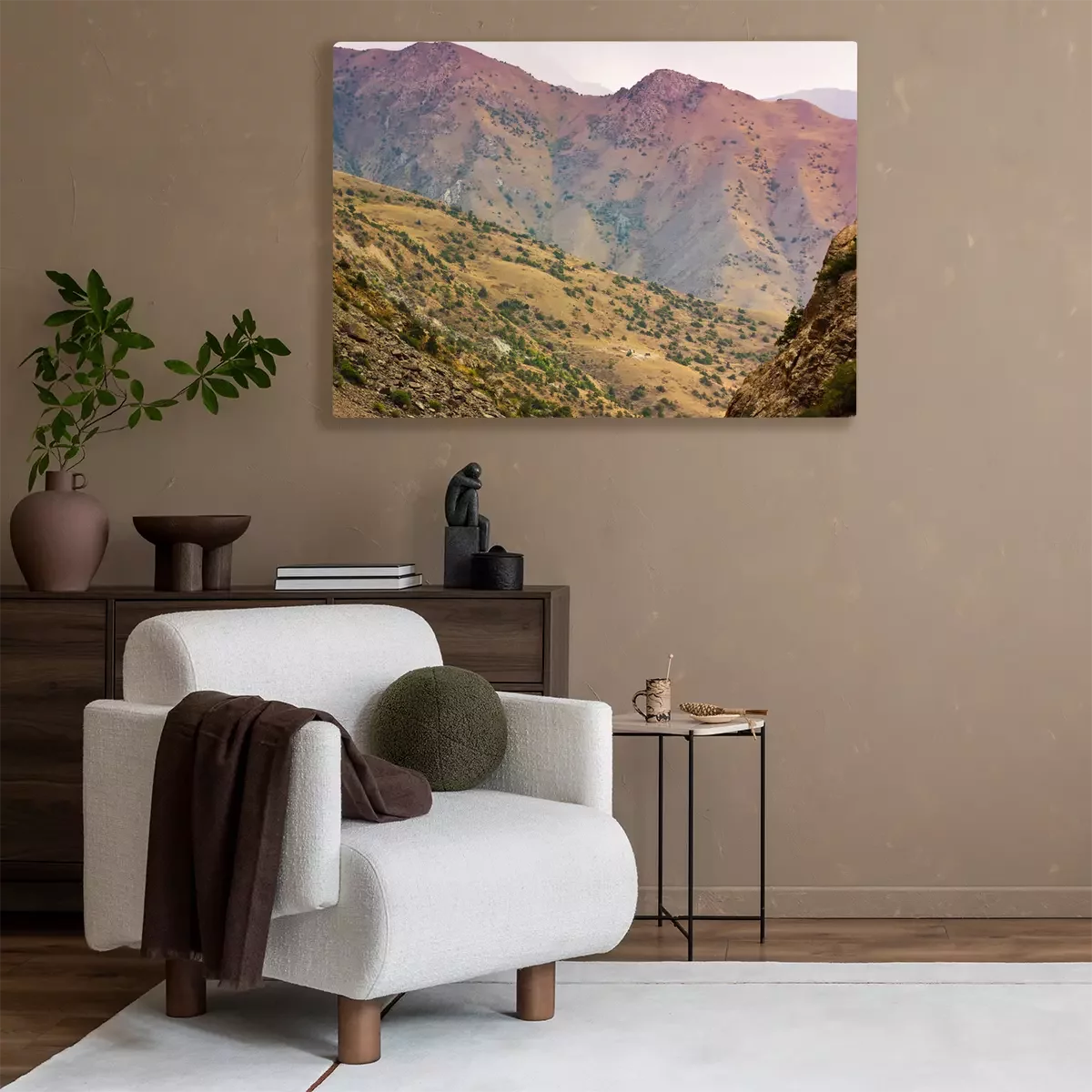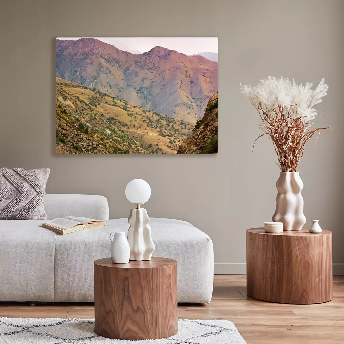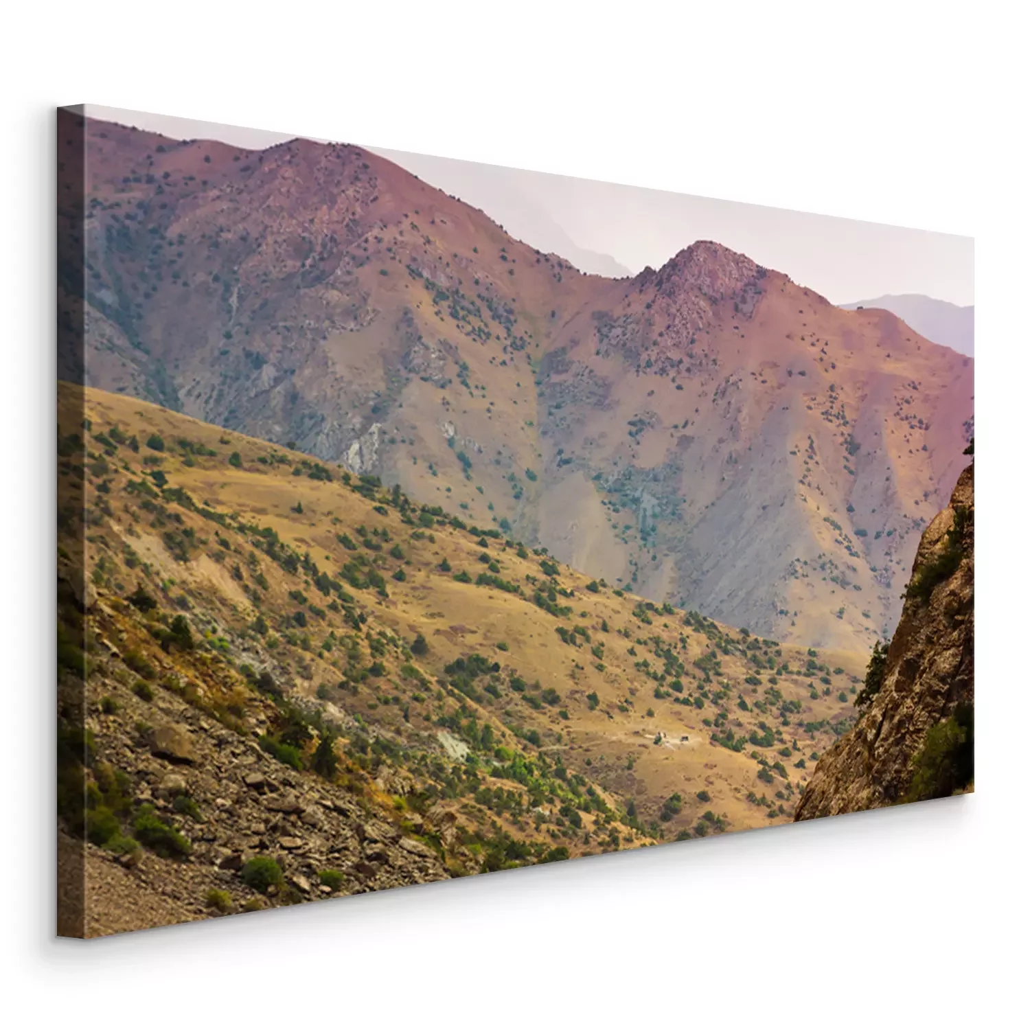 Canvas: achtergrond gelaagde bergen heuvels bij zonsondergang